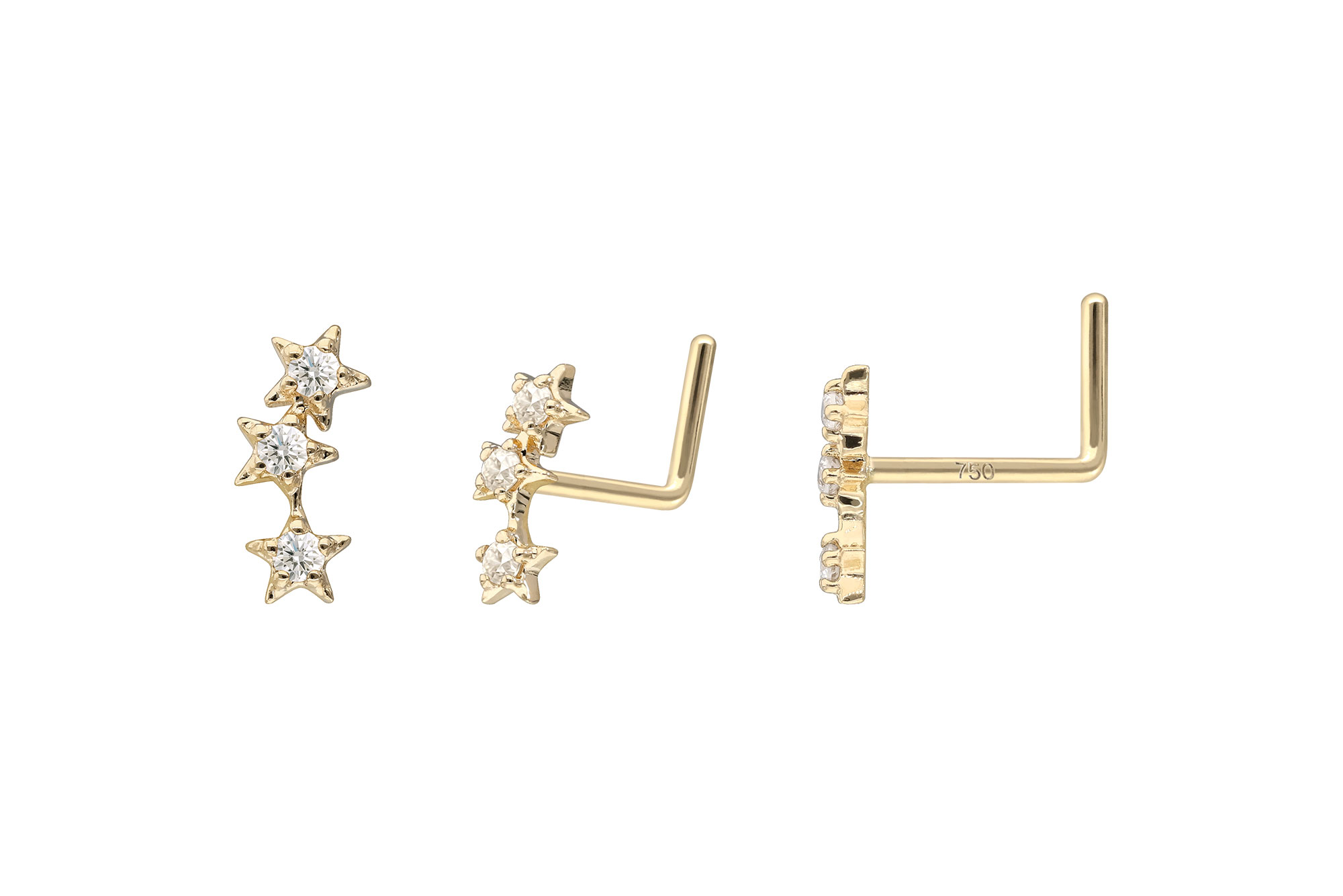 14/18 Carat Gold - Nose Stud L-Form 3 Moissanite Stars