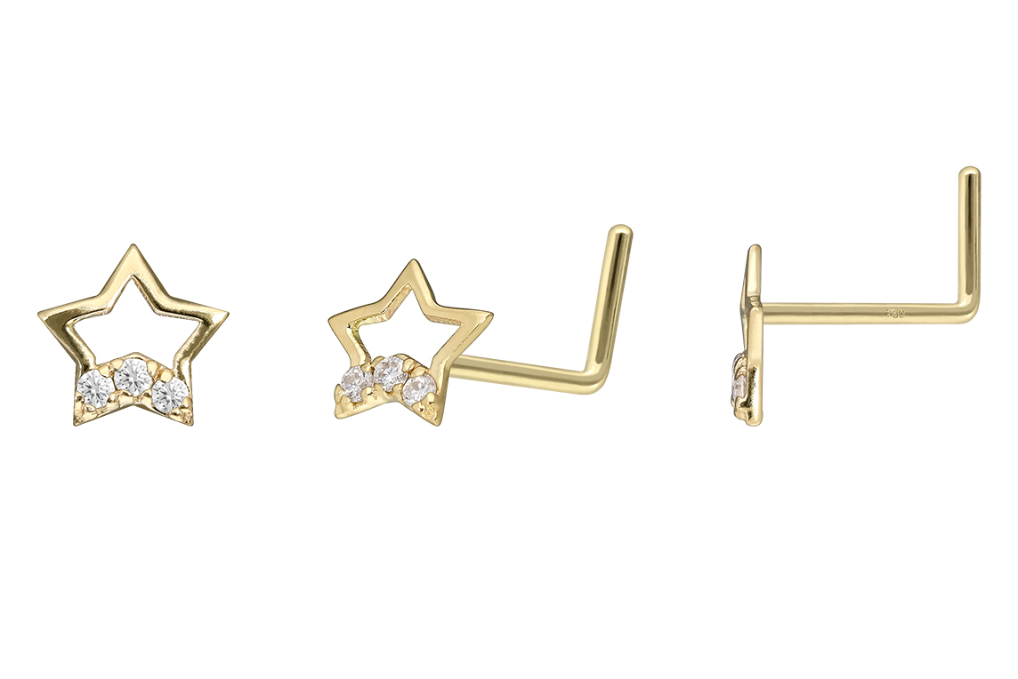 14/18 carat gold nose stud L-form 3 MOISSANITE + STARS
