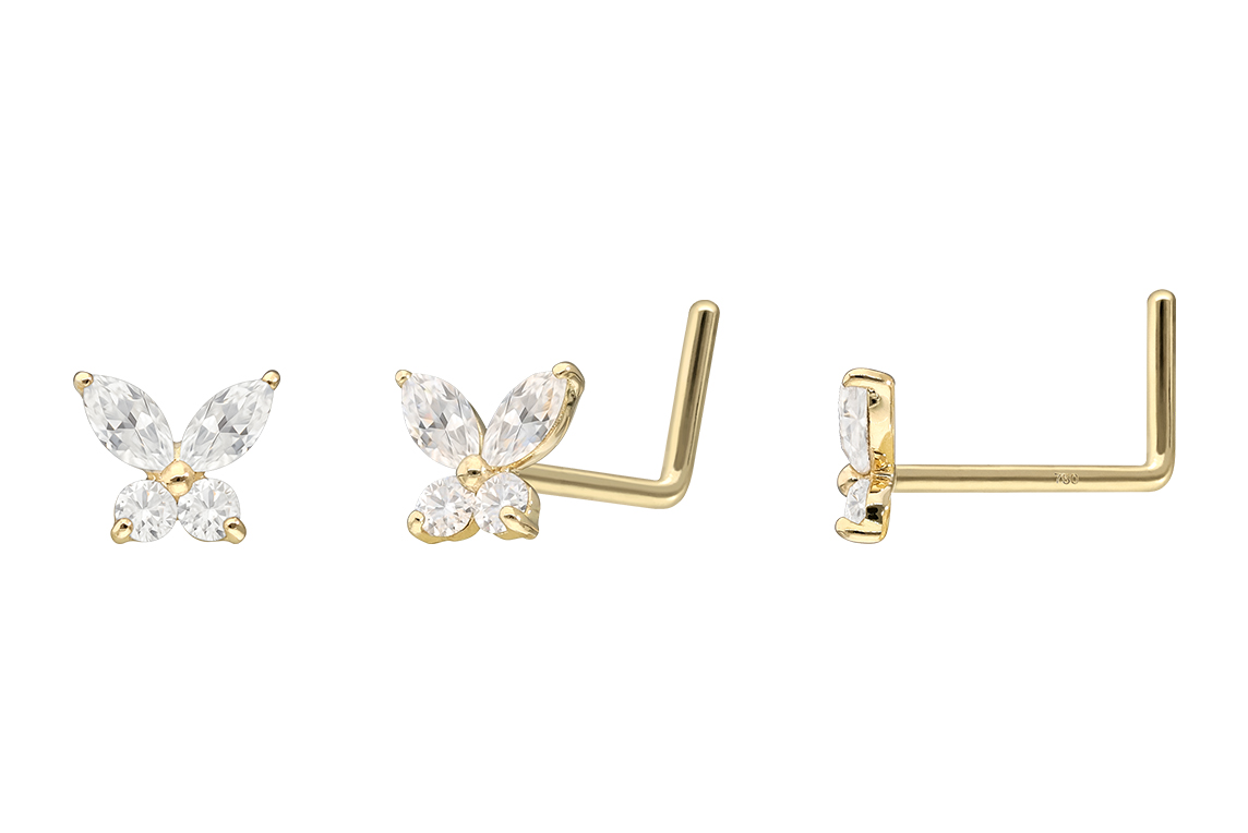 14/18 carat gold nose stud L-form MOISSANITE BUTTERFLY