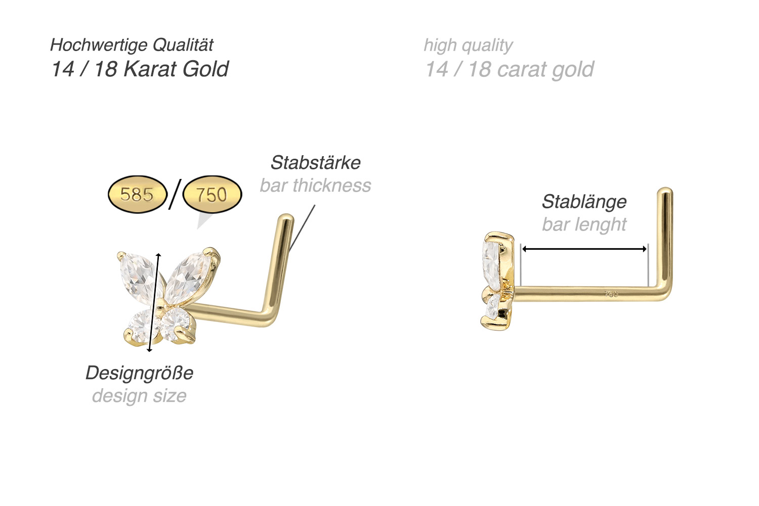 Design size (moissanite butterfly): 4 x 5 mm14/18 Carat Gold - Nose Stud L-Form Moissanite Butterfly
