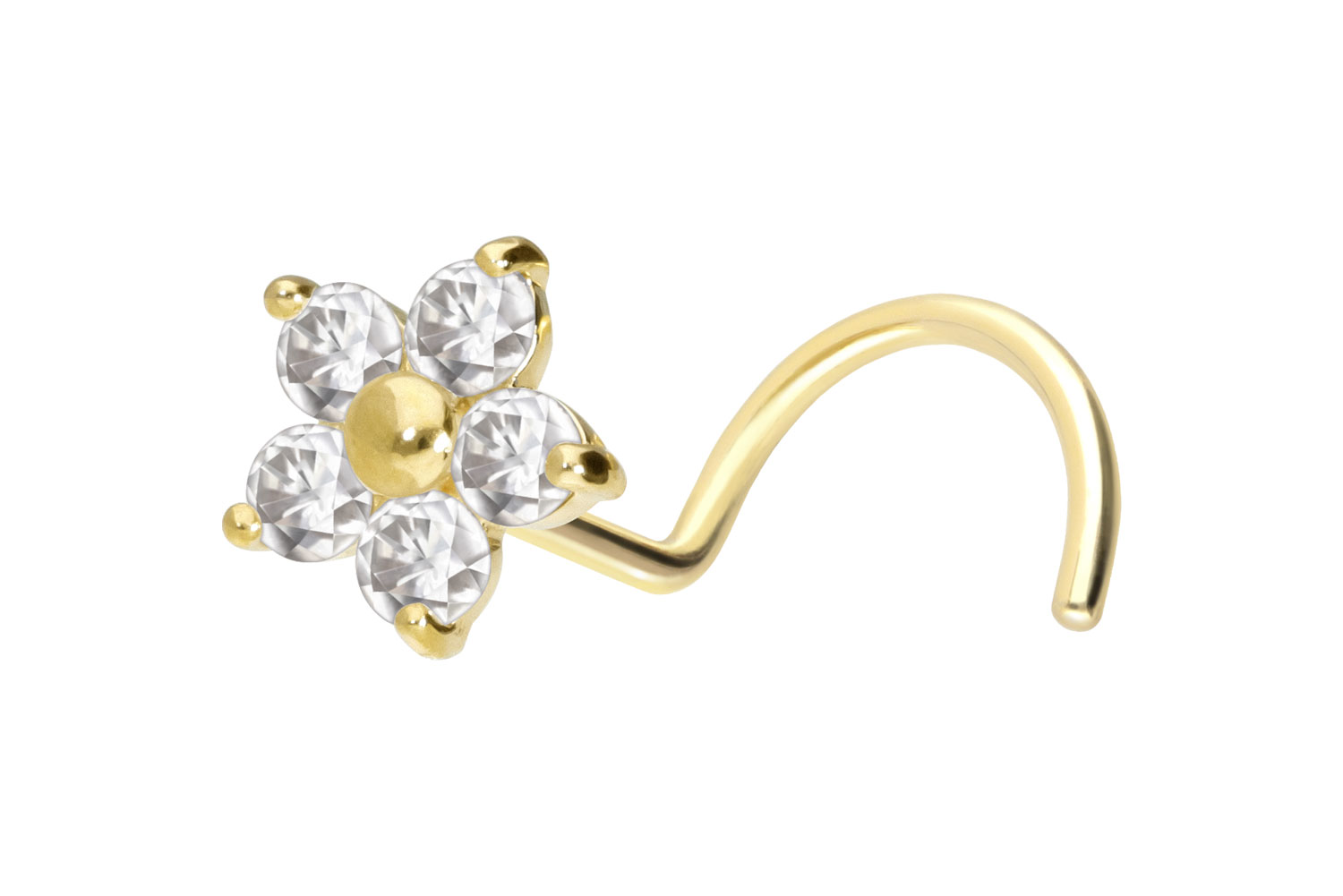 Design size (moissanite flower): 5 mm14/18 Carat Gold - Nose Stud Spiral Moissanite Flower