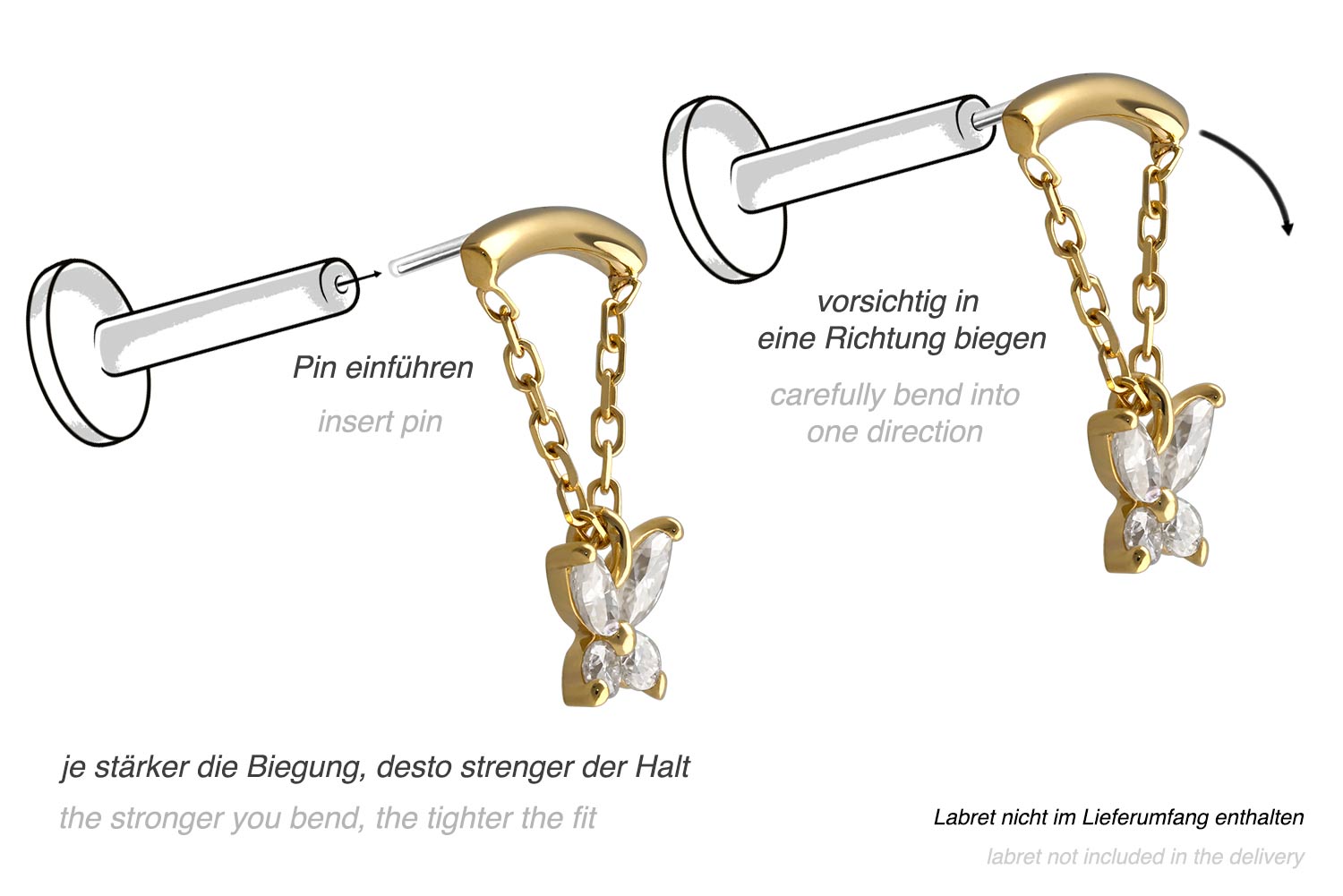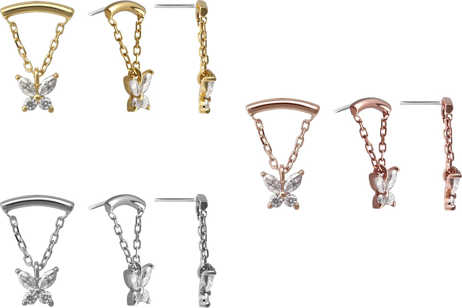14 Carat Gold - Attachment with Titanium Push Pin Moissanite Butterfly + Arch + Chain