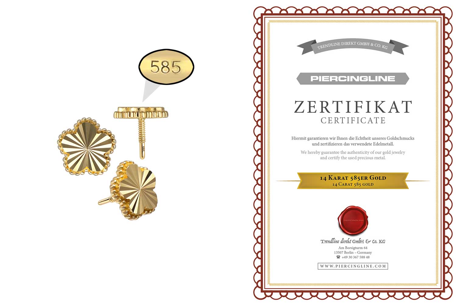 Material: 14 carat (585) yellow gold / rose gold / white gold (rhodium-plated)