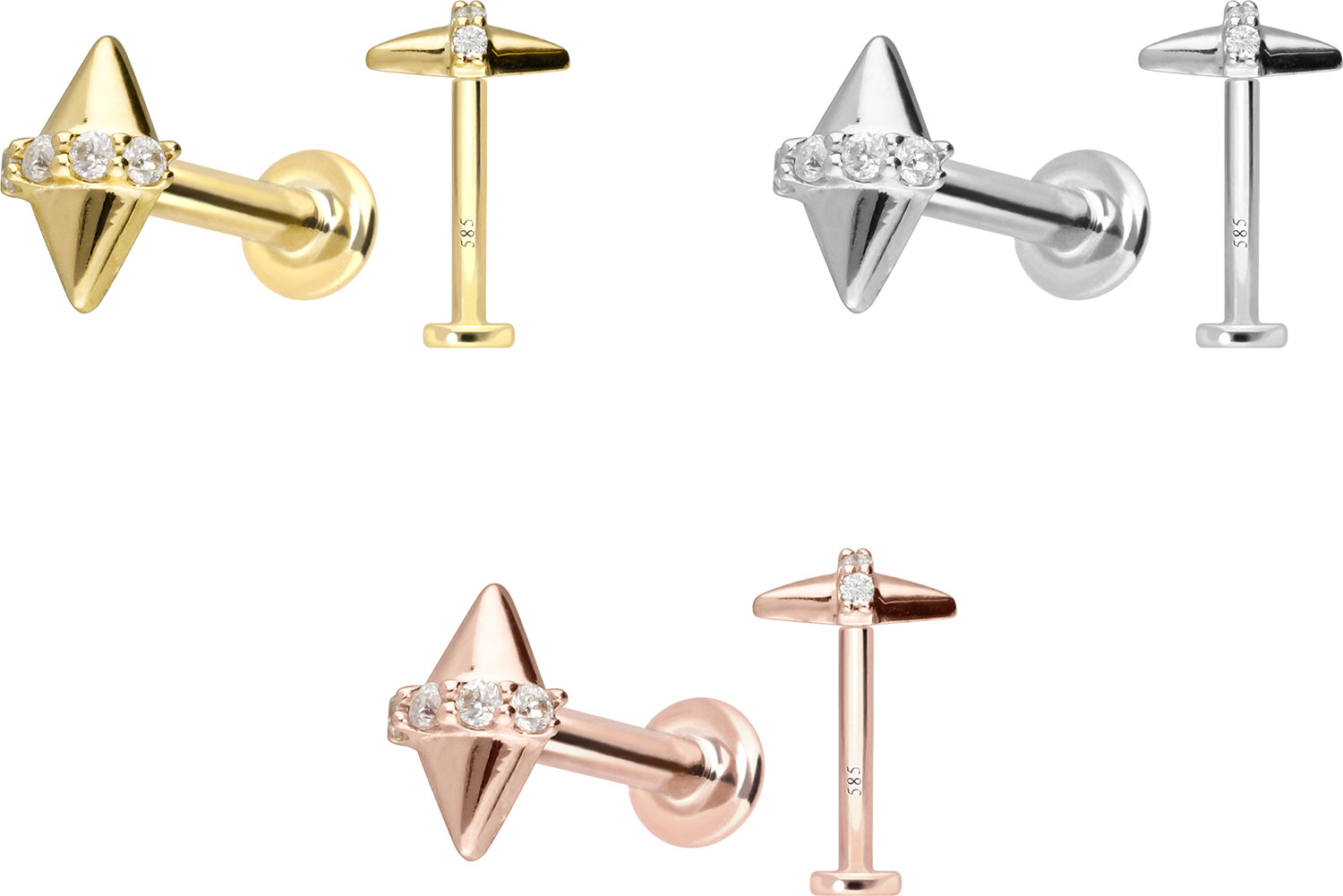 14 Carat Gold - Labret with internal Thread Moissanite + 2 Spikes