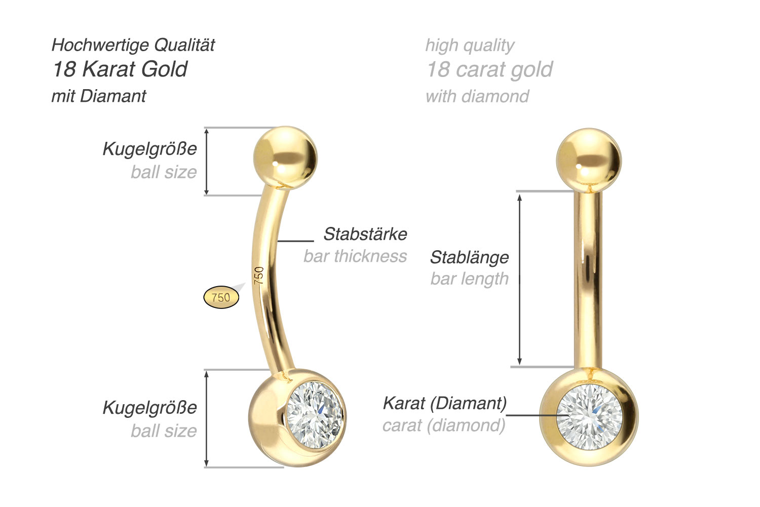 18 Carat Gold - Mini Bellybutton Piercing Diamond