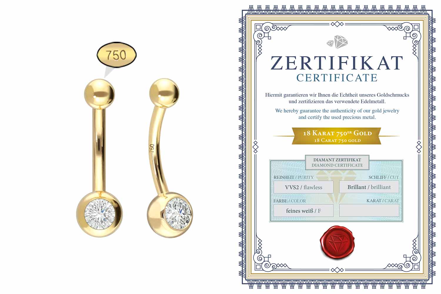 thickness of 1.6 mm and a length of 10 mm. Additionally, a certificate of authenticity for the diamond is included in the scope of delivery.