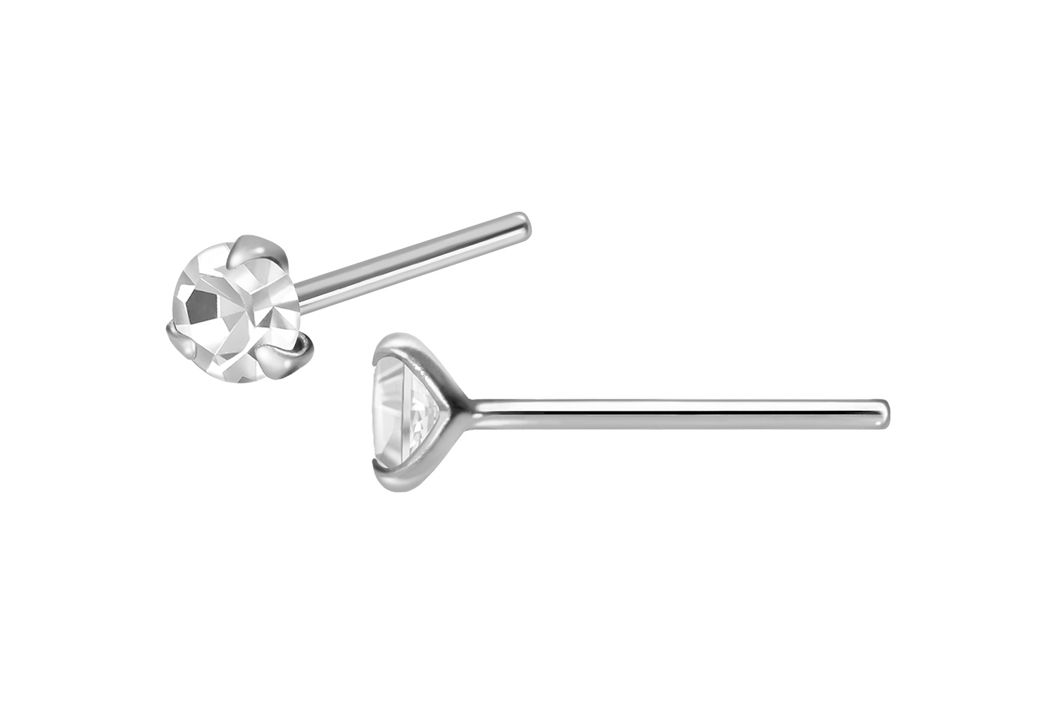 crystal with setting, making it shine in full glory. Since the bar of the piece of jewelry is bendable, an ideal adjustment to the individual nose shape can be made, so that the wearing experience proves to be even more comfortable. The stud furthermore has a bar thickness of 0.6 mm,