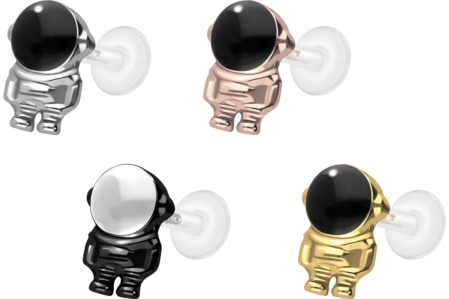 PTFE - Labret with internal Thread + Titanium Attachment Astronaut