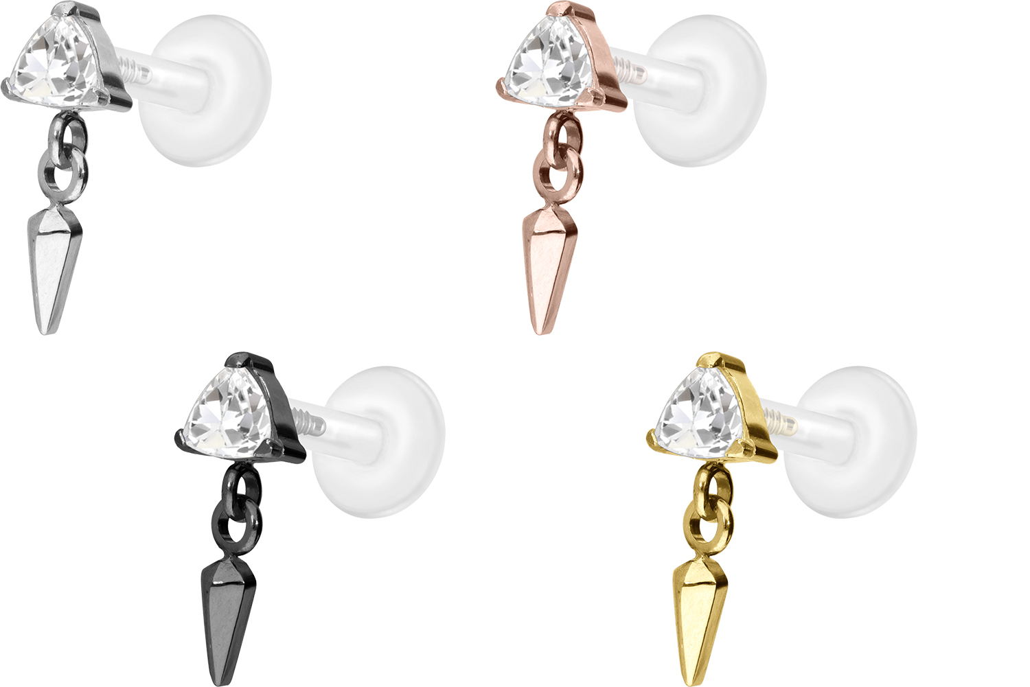 PTFE - Labret with internal Thread + Titanium Attachment Crystal Triangle + Cone