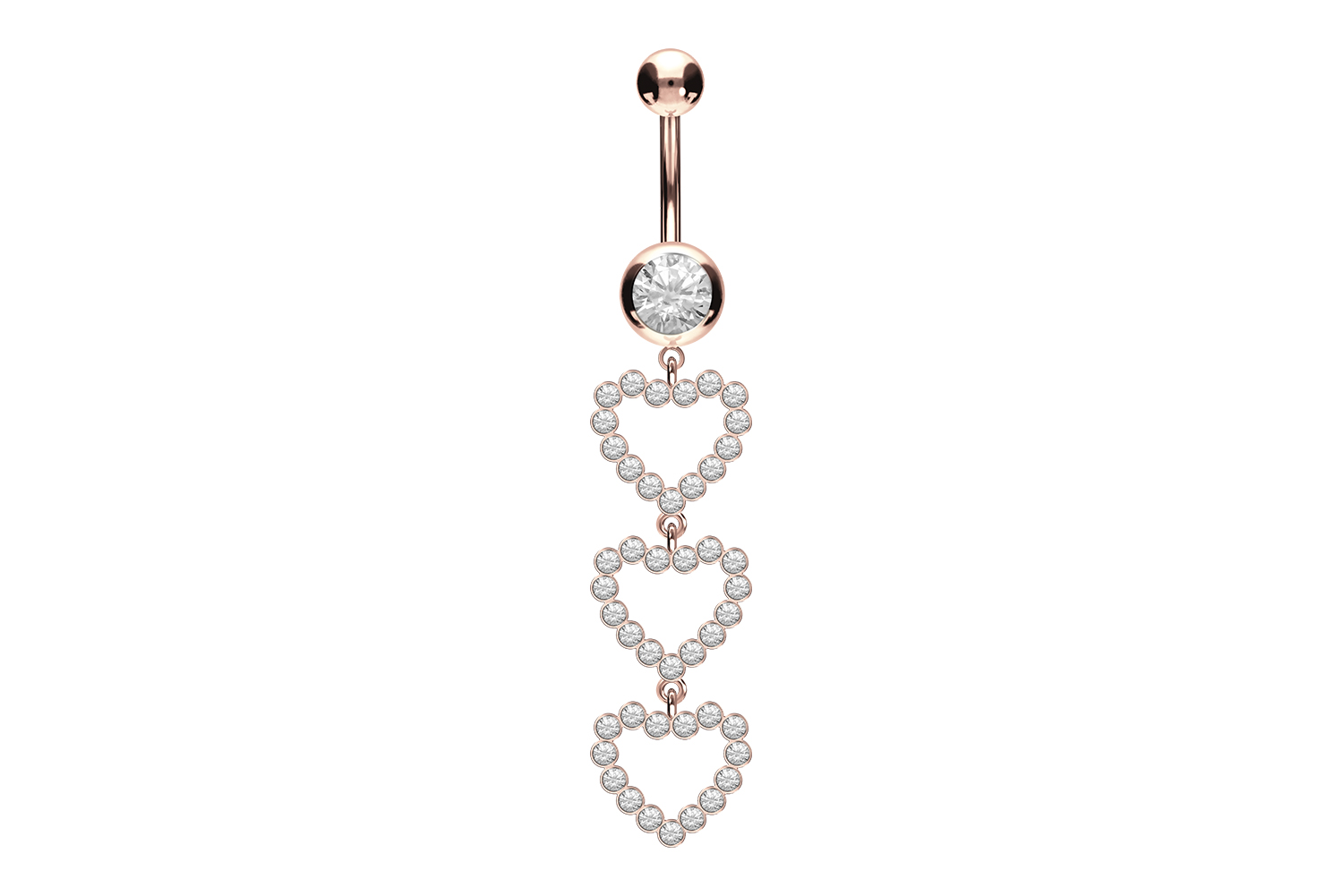 Surgical Steel 316L - Bellybutton Piercing 3 Crystal Hearts