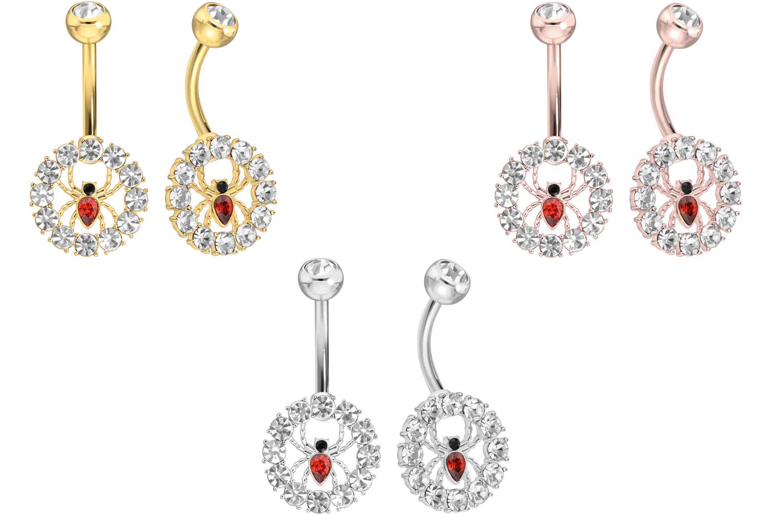 Surgical Steel 316L - Bellybutton Piercing Crystal Circle + Spider