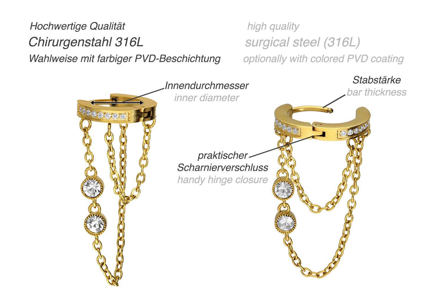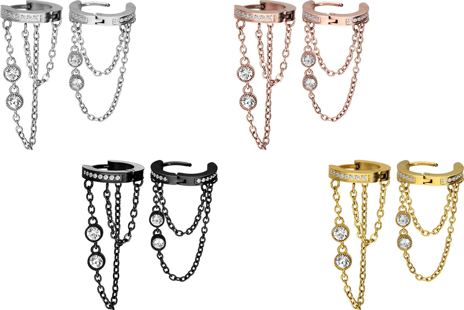 Surgical steel 316L - Ear Clicker Chains + Crystals