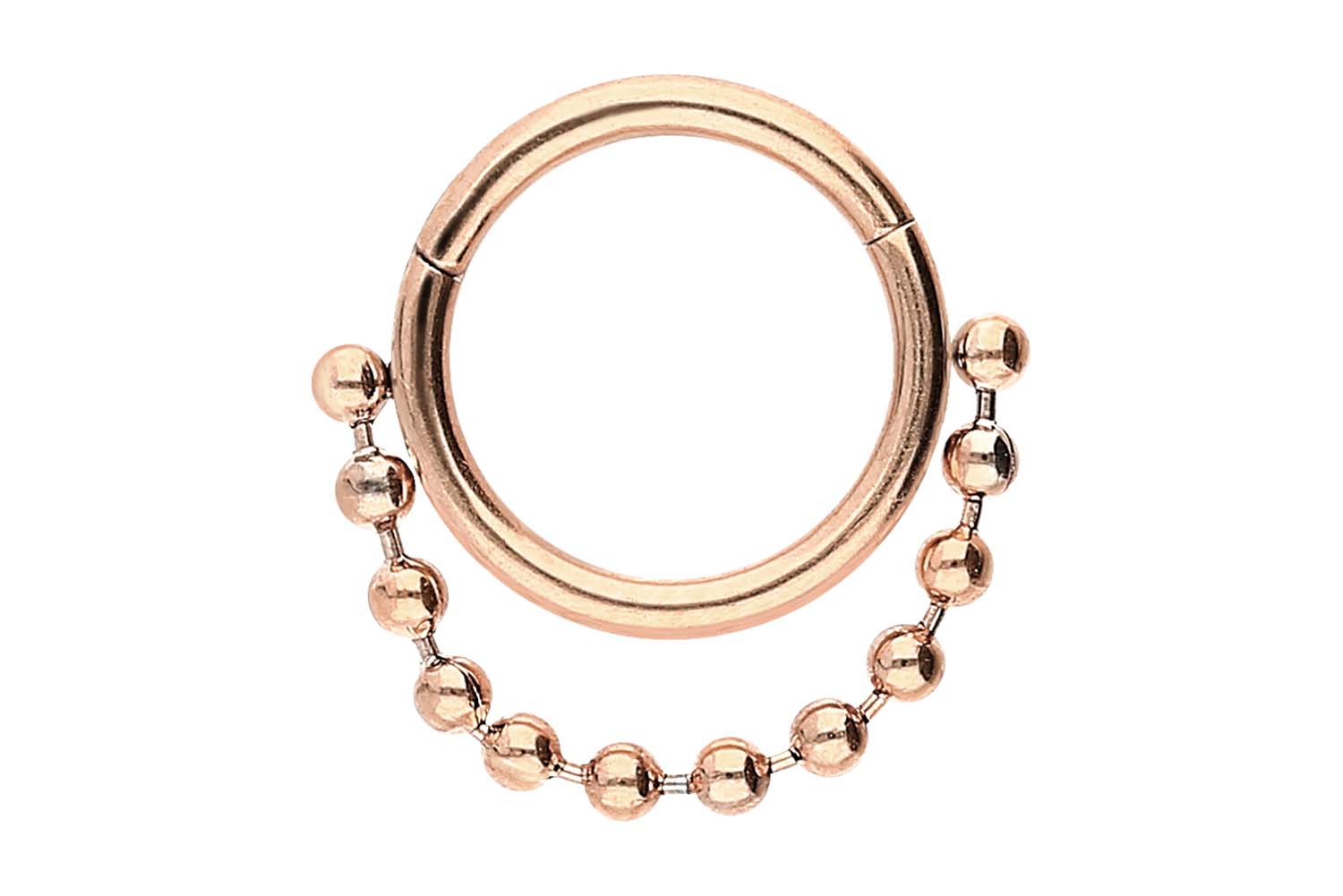 Easy handling and gorgeous design – that is what our clickers are all about! The main feature of the clickers is the practical hinge, which simplifies the piercing's insertion. The material used for manufacturing (surgical steel 316L) is characterized by its flatness and high quality. Depending on the desired color the piercing is covered with a scratch-resistant PVD coating. As a special highlight, the noble clicker is adorned with an appealing ball chain. Whether at the ear, the nose or the lip – our clickers are suitable for a variety of different piercing locations.Material: surgical steel 316L