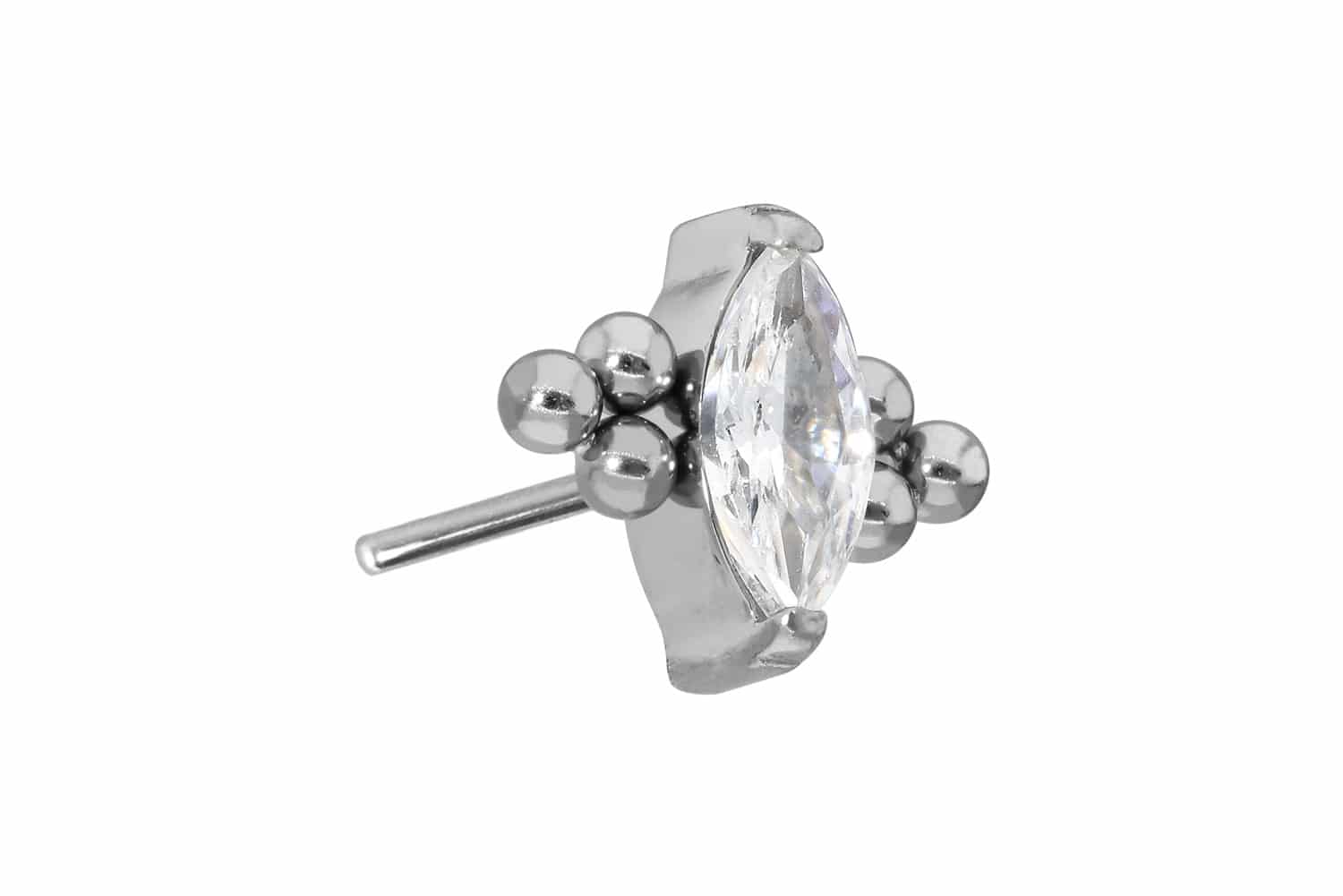 This unique push pin attachment in form of a crystal drop, which is decorated with several balls, was specially developed for our push fit piercings and is made of high quality