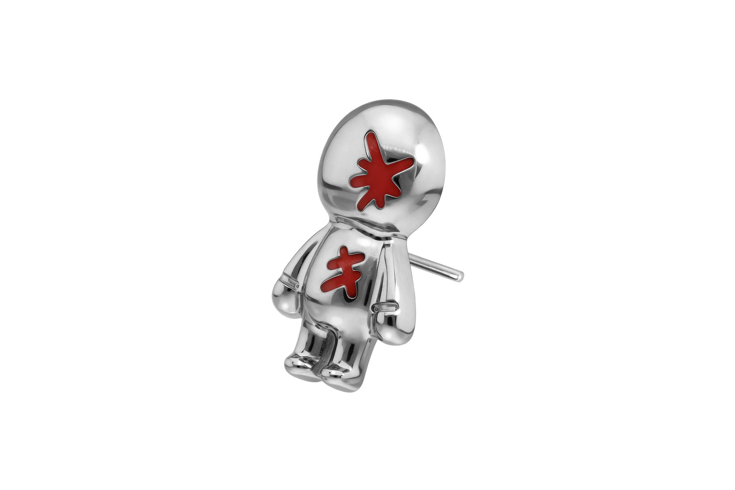 This unique push pin attachment in form of a doll was specially developed for our push fit piercings and is made of high quality titanium, which among other advantages is characterized by good skin compatibility and high durability. Also one of its specific material properties is color fastness, guaranteed in the silver-colored variants as well as in the black, gold and rosegold-colored variants with PVD coating. For insertion, the pin must be bent as desired. It should be noted that a firmer hold is ensured when the pin is bent a little more. Since the push pin of the attachment is compatible with all our push fit products, there are furthermore various combination possibilities.