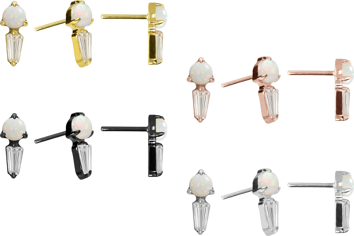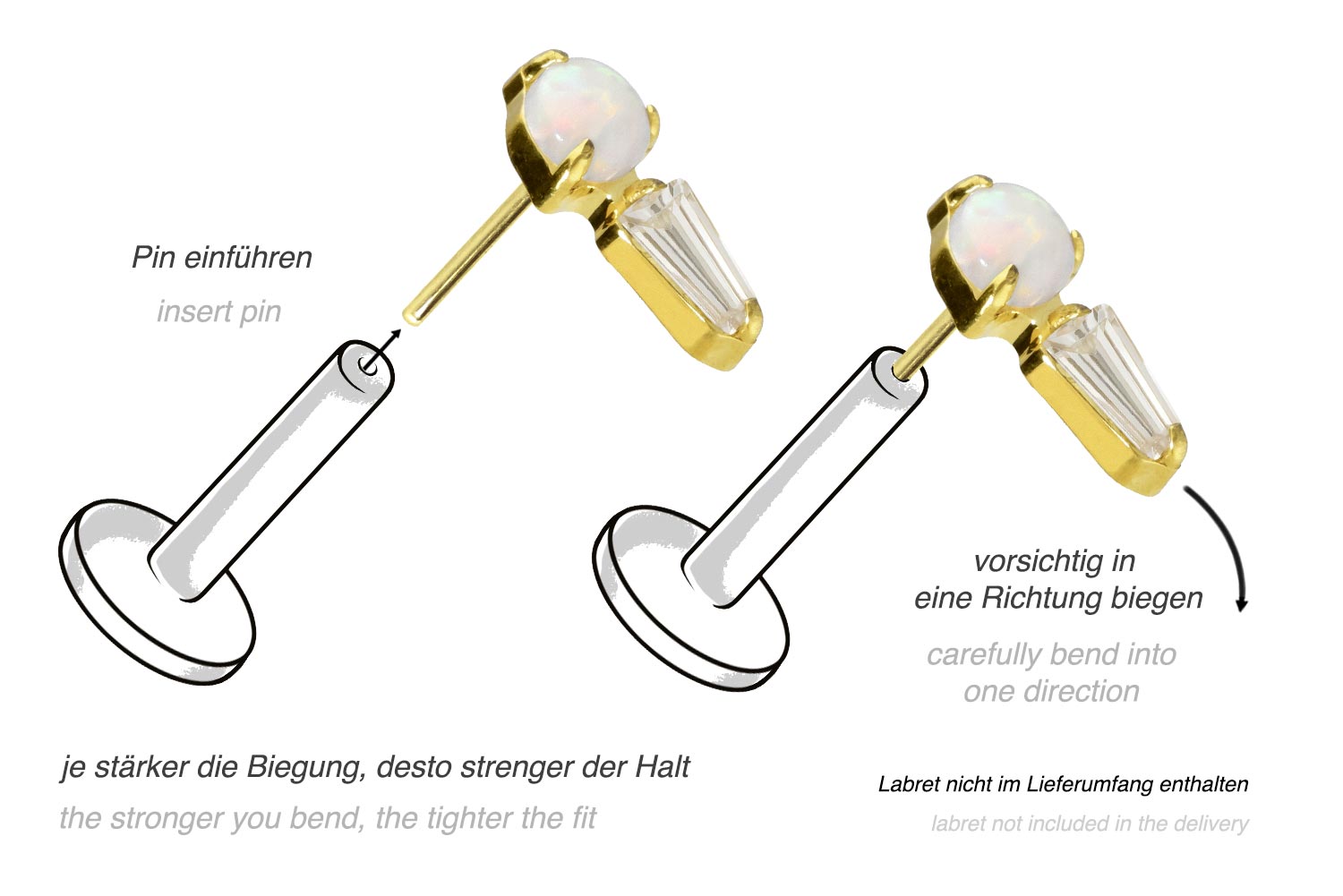 This unique push pin attachment in the form of a synthetic opal combined with a sparkling crystal rectangle was specially developed for our push fit piercings and is made of high quality