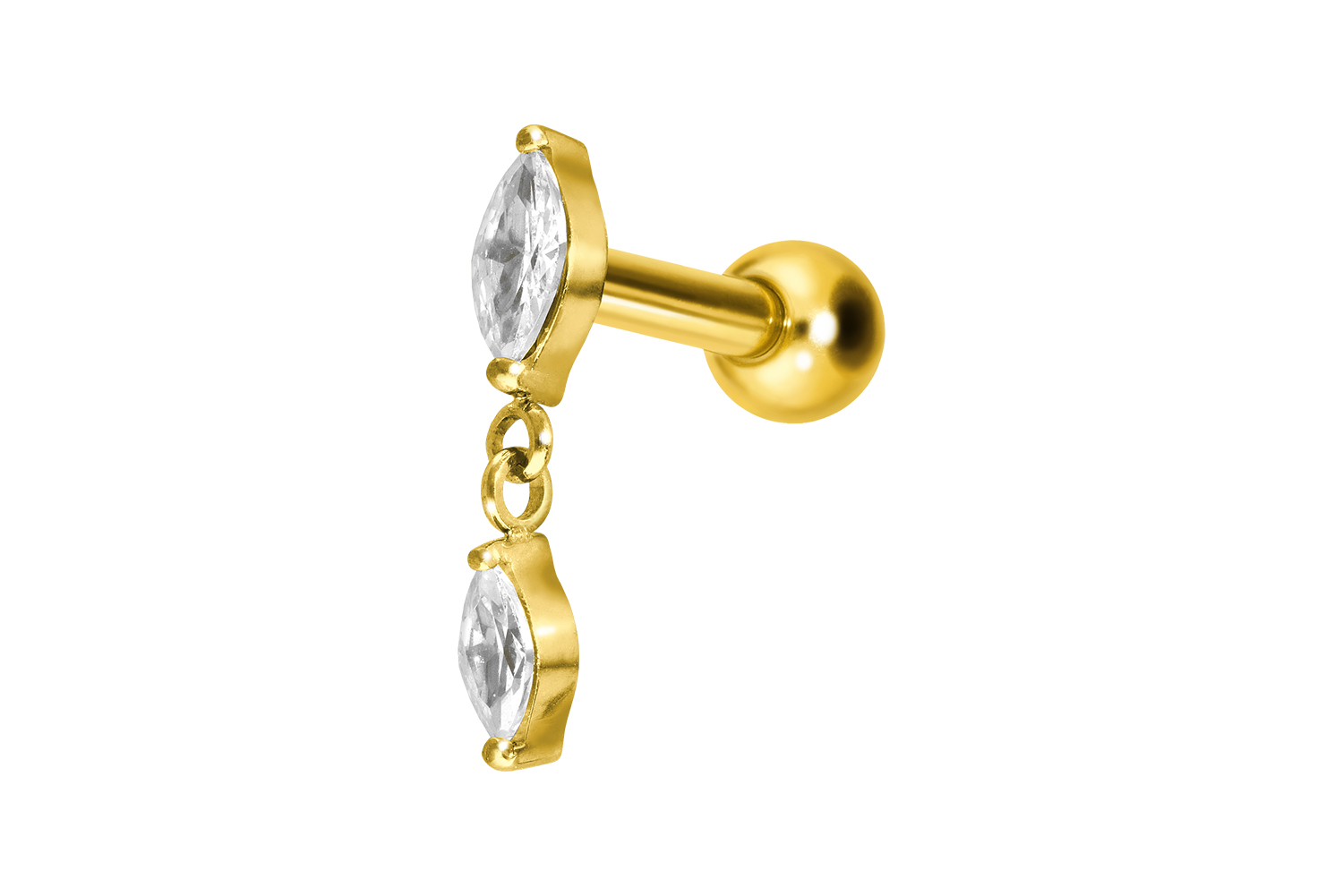 Titanium - Ear Piercing with internal Thread 2 Crystal Drops
