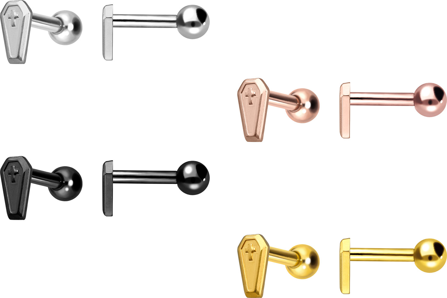 Titanium - Ear Piercing with internal Thread Coffin