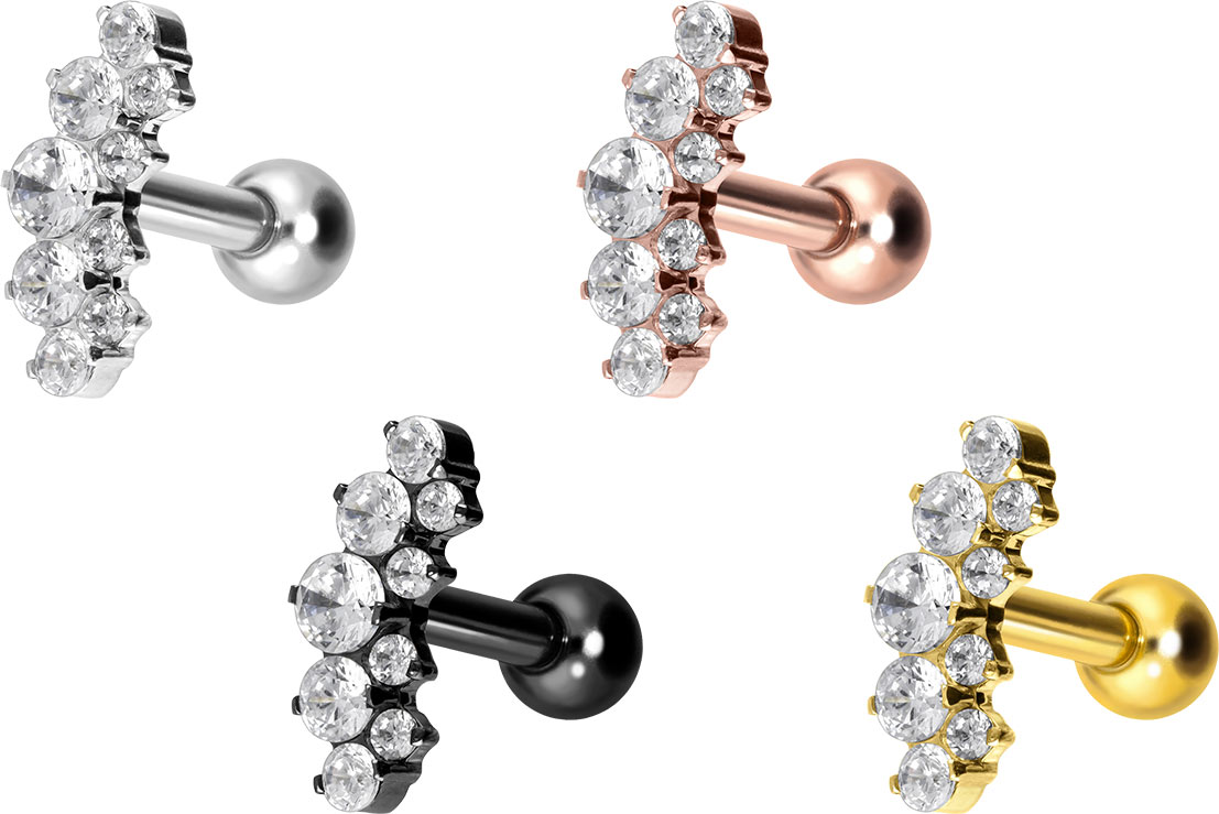 Titanium - Ear Piercing with internal Thread Crystal Arch
