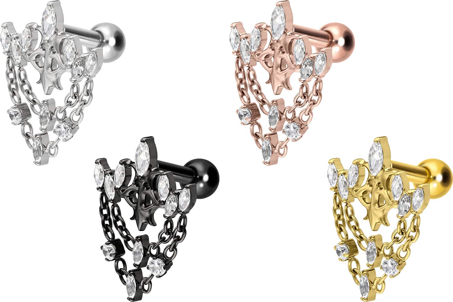 Titanium - Ear Piercing with internal Thread gothic Crown + Chains