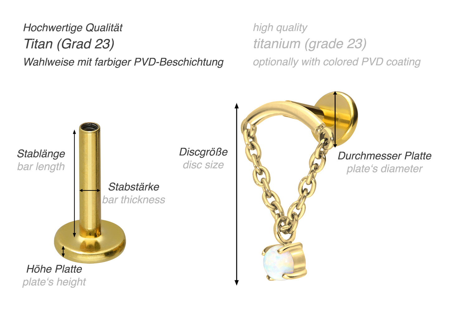 also guaranteed in the colored versions with PVD coating. The labret