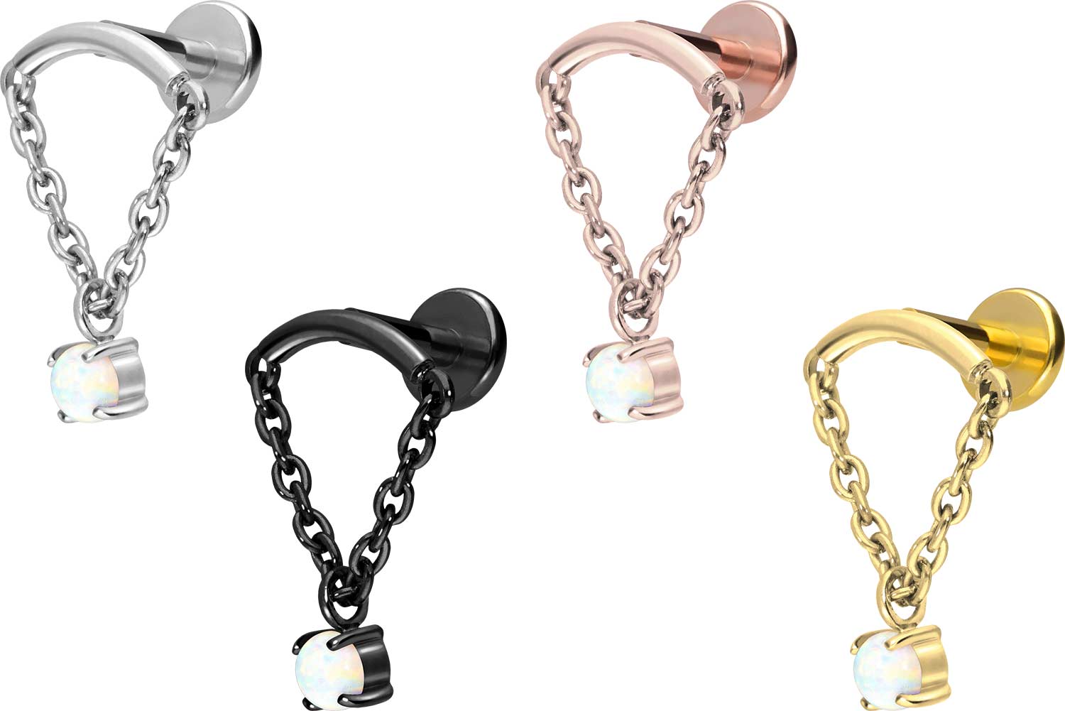 Titanium - Labret with internal Thread Arch + Chain + synthetic Opal