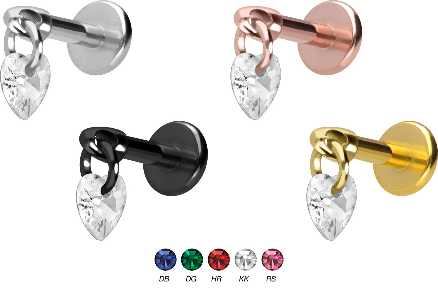 Titanium - Labret with internal Thread Crystal Heart