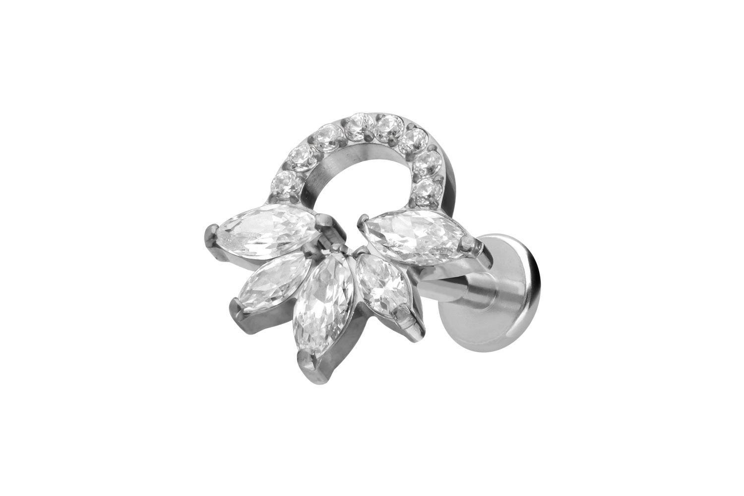 is supplied with a timelessly beautiful screw-in attachment with external thread in form of a crystal rattle, has a bar thickness of either 1.2