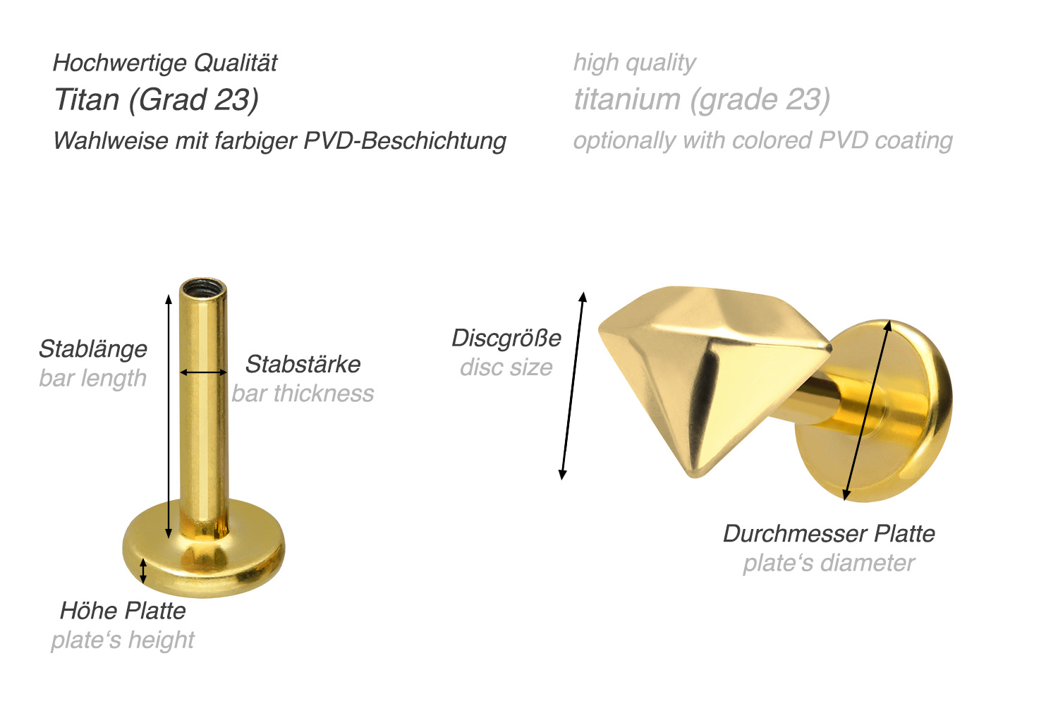 also guaranteed in the colored versions with PVD coating. The labret