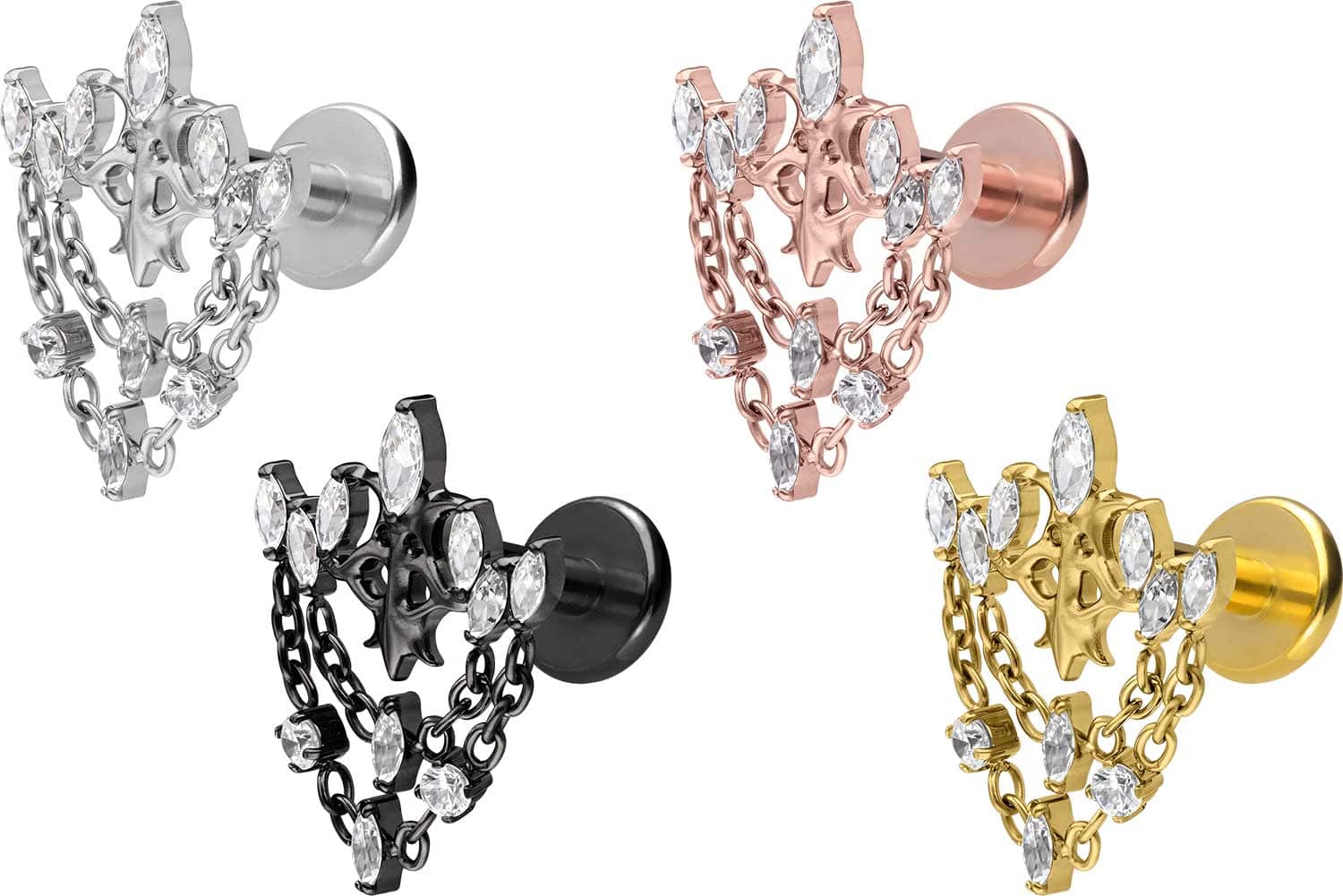 Titanium - Labret with internal Thread gothic Crown + Chains