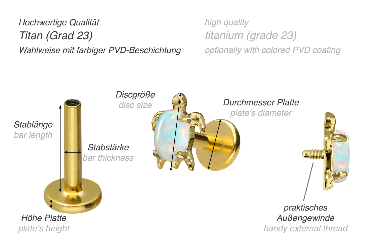 also guaranteed in the colored versions with PVD coating. The labret