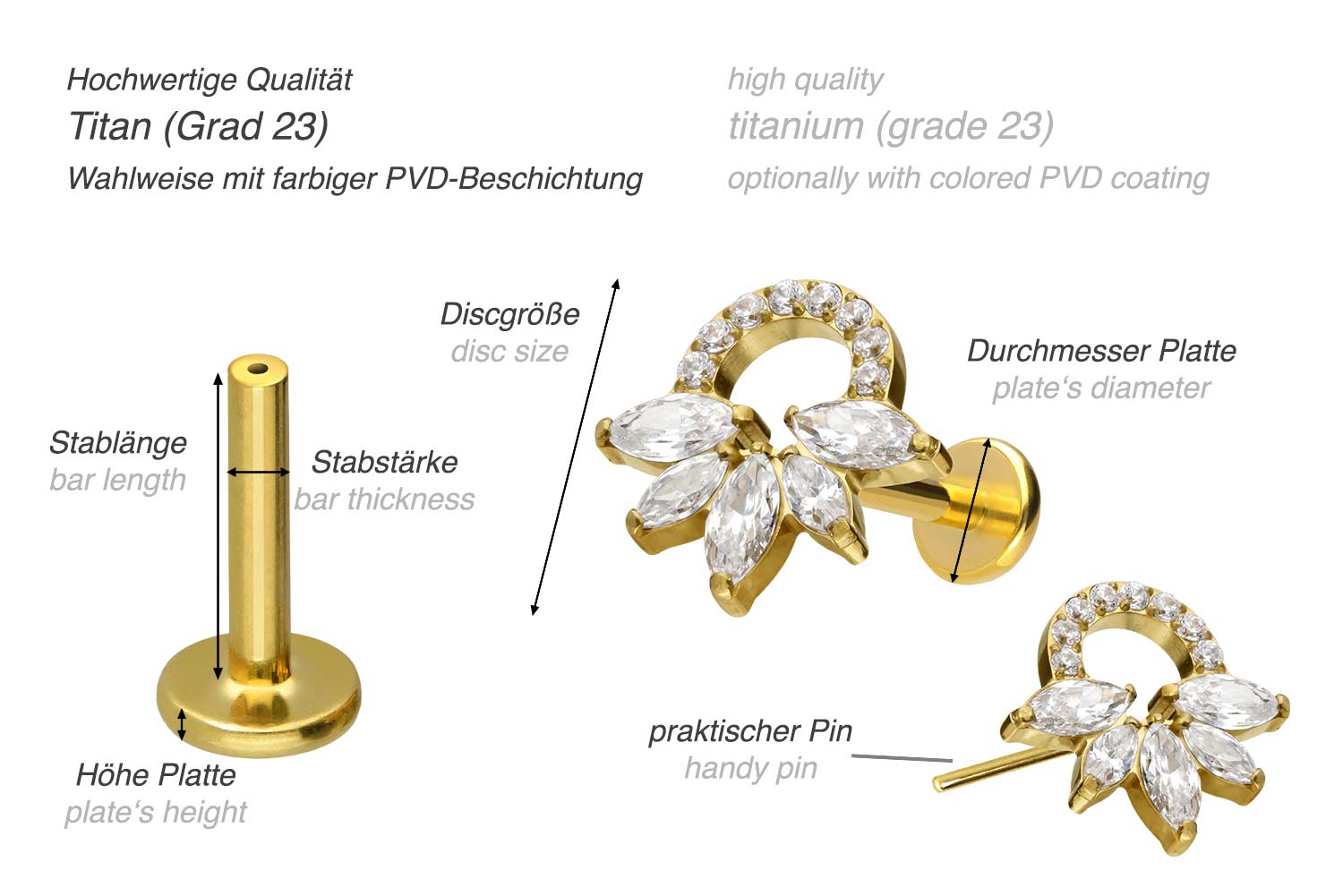 also guaranteed in the colored versions with PVD coating. The labret