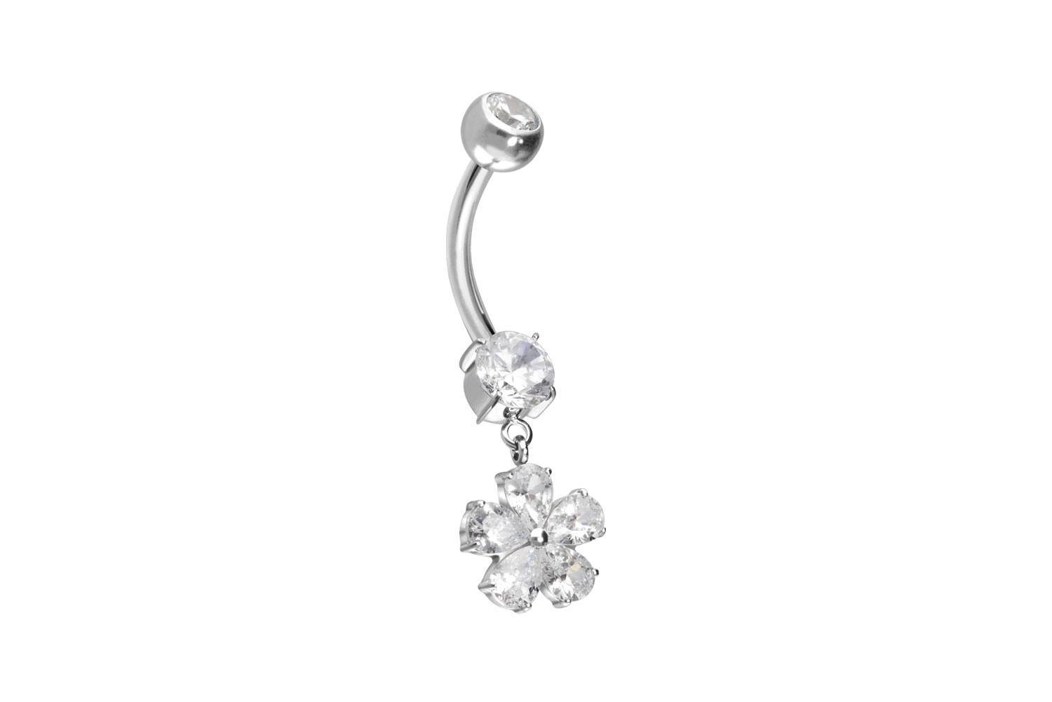 Titanium - Bellybutton Piercing with internal Thread Crystal Flower