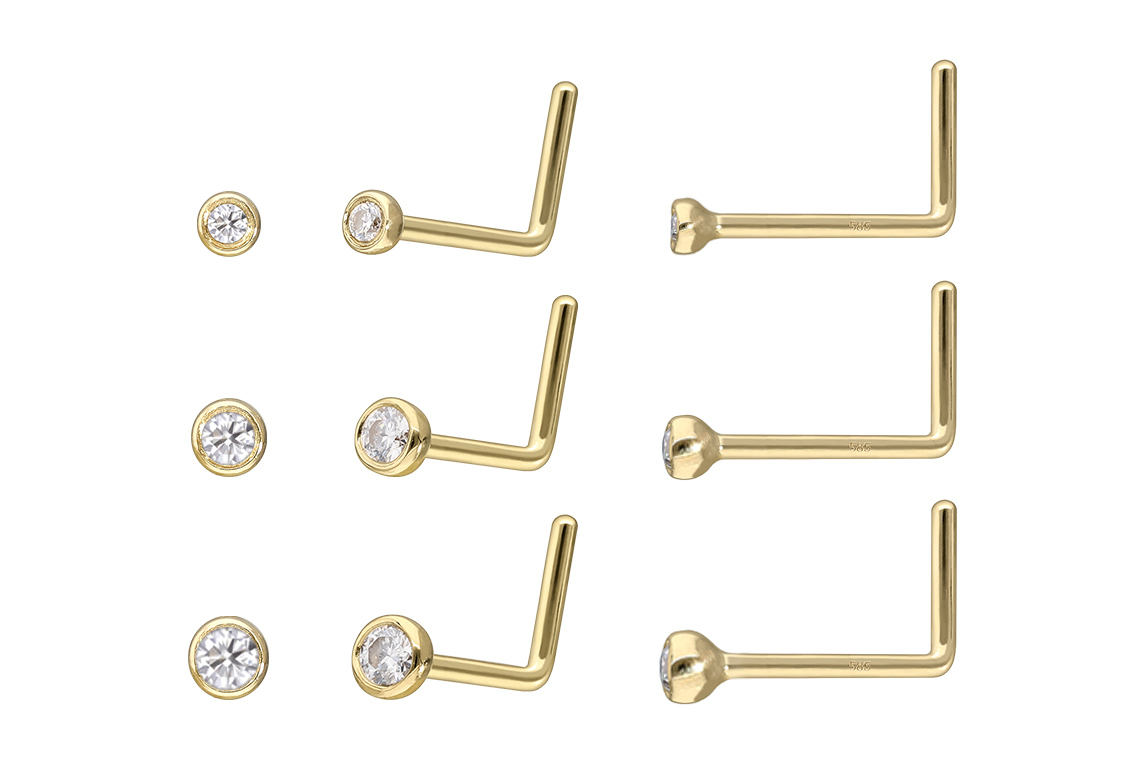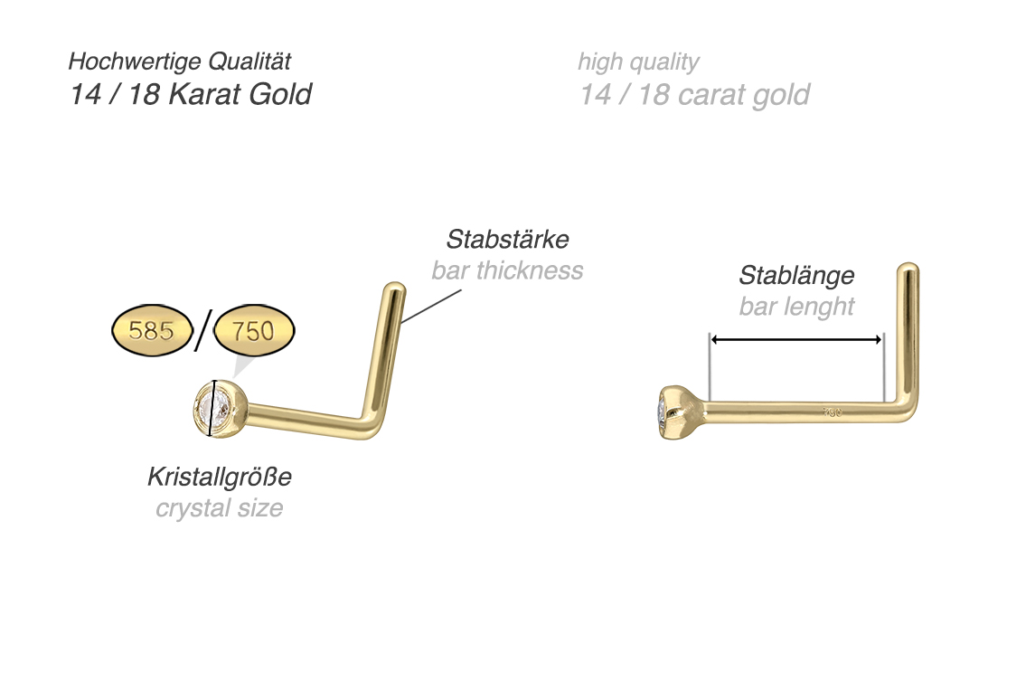 Kristallgröße: 1,8 / 2,2 / 2,4 mm14/18 Karat Gold - Nasenstecker L-Form eingefasster Moissanit