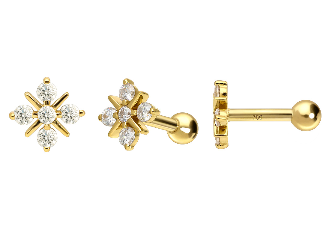 14/18 Karat Gold Ohrpiercing MOISSANIT-STERN