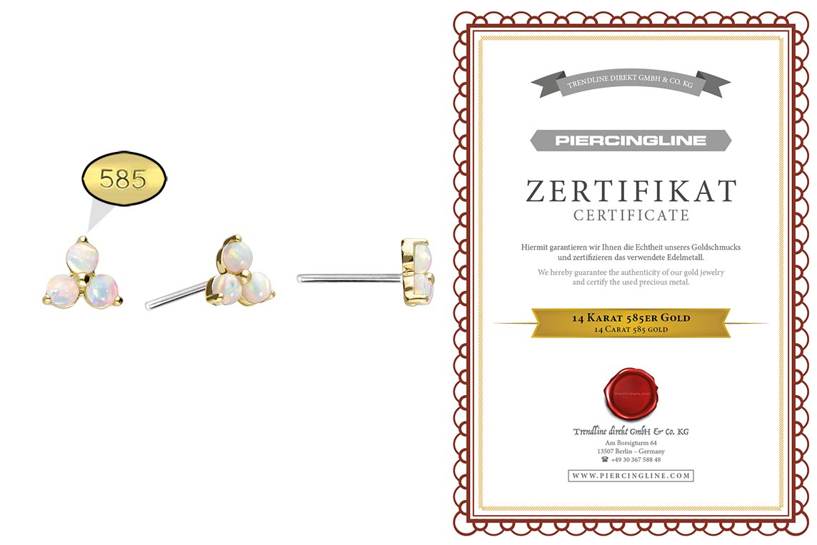 Material: 14 Karat (585er) Gelbgold / Roségold / Weißgold (rhodiniert) / synthetischer Opal