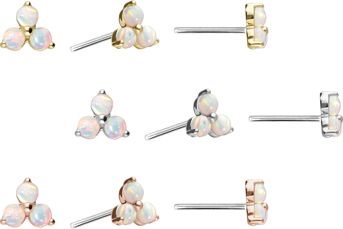14 Karat Gold Aufsatz mit Titan Push Pin BLUME + 3 SYNTHETISCHE OPALE