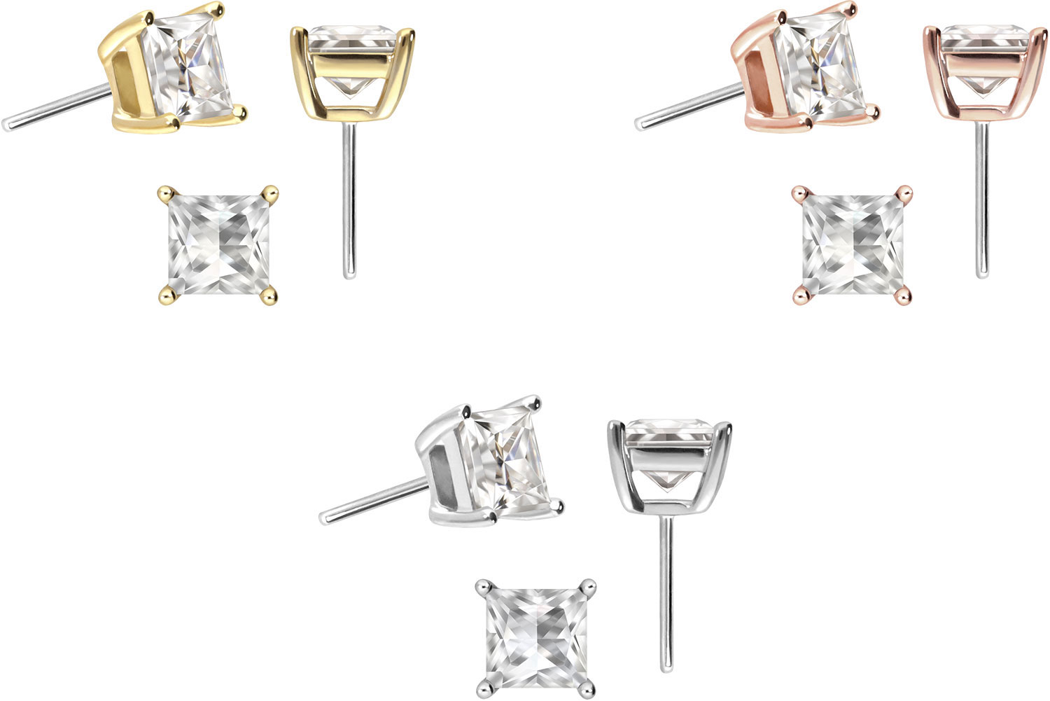 14 Karat Gold Aufsatz mit Titan Push Pin MOISSANIT-QUADRAT