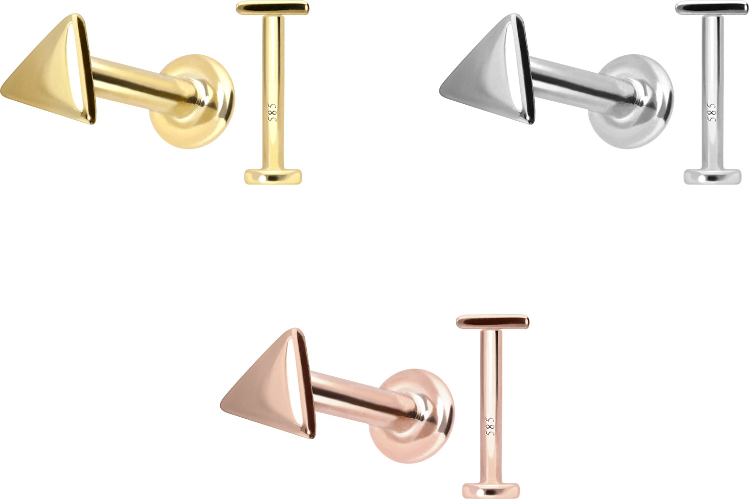 14 Karat Gold - Labret mit Innengewinde Dreieck