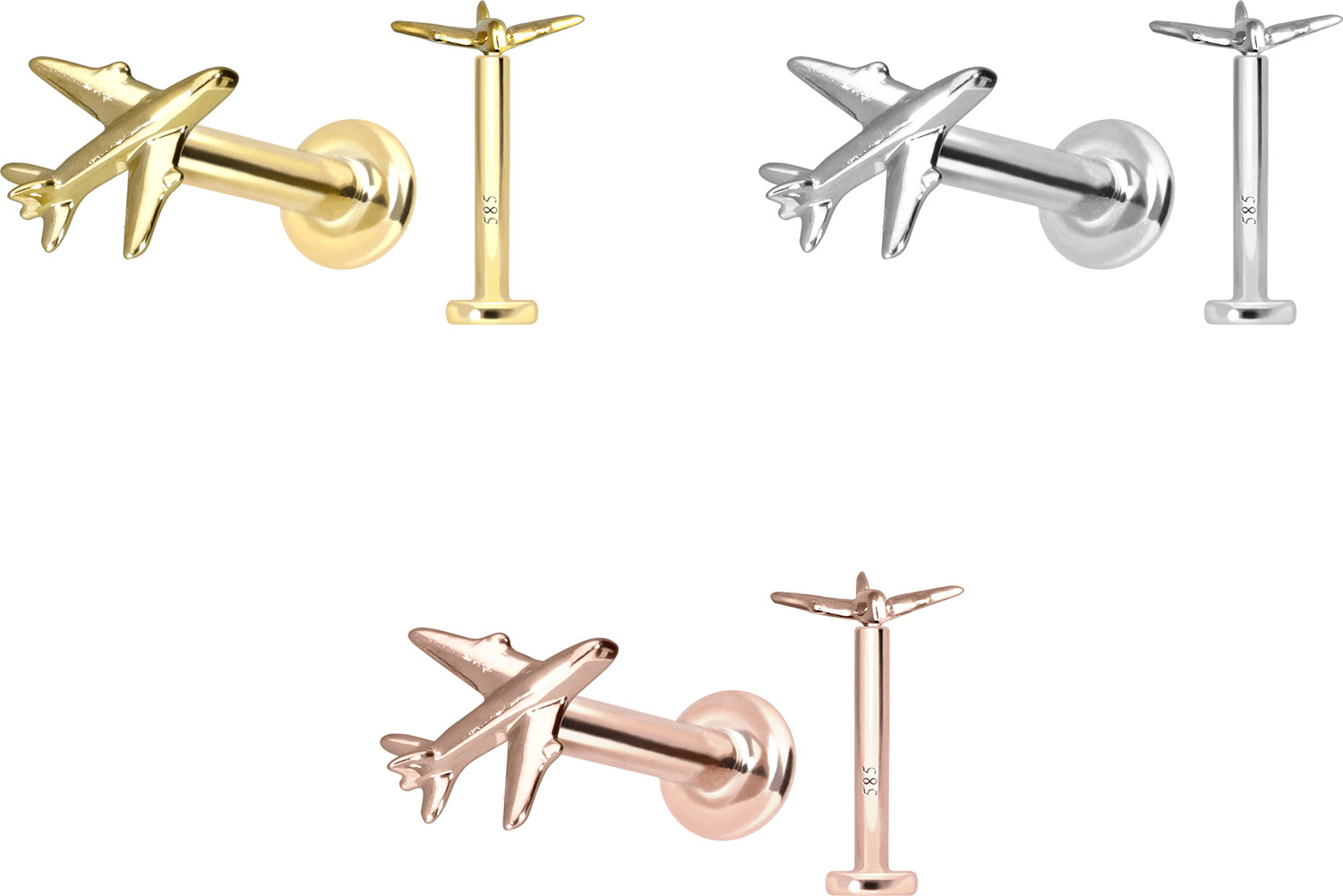 14 Karat Gold - Labret mit Innengewinde Flugzeug