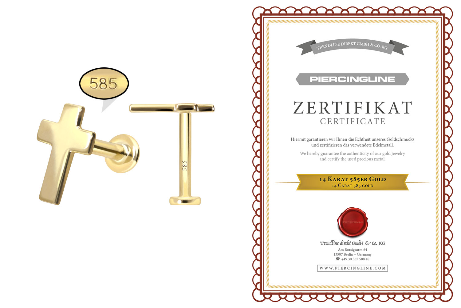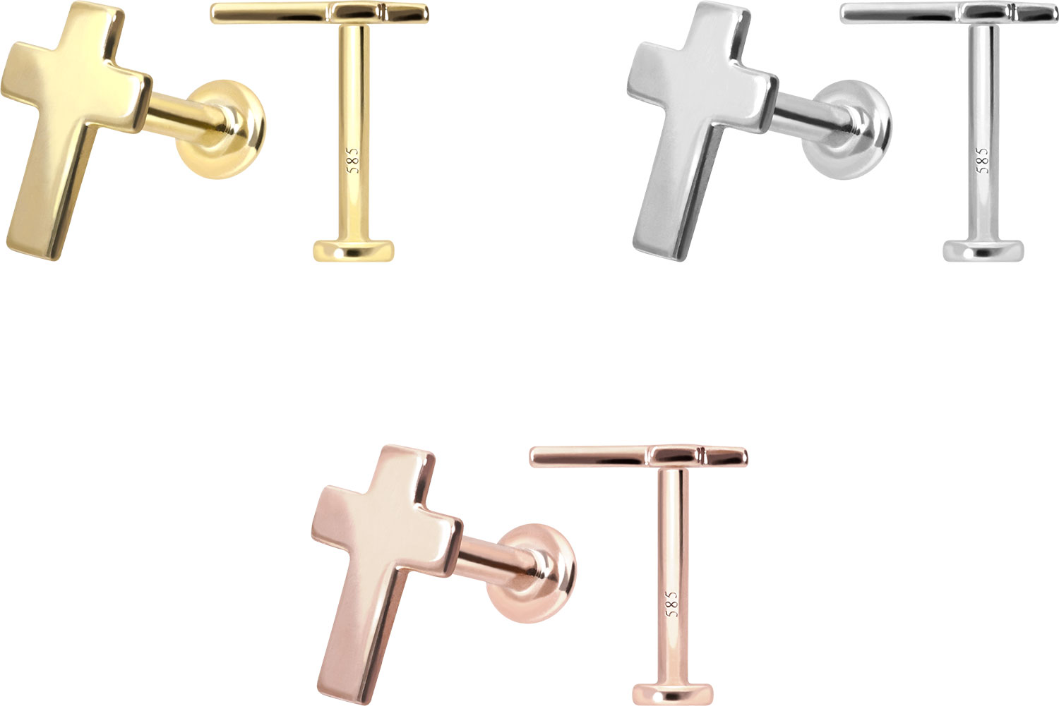 14 Karat Gold - Labret mit Innengewinde Kreuz