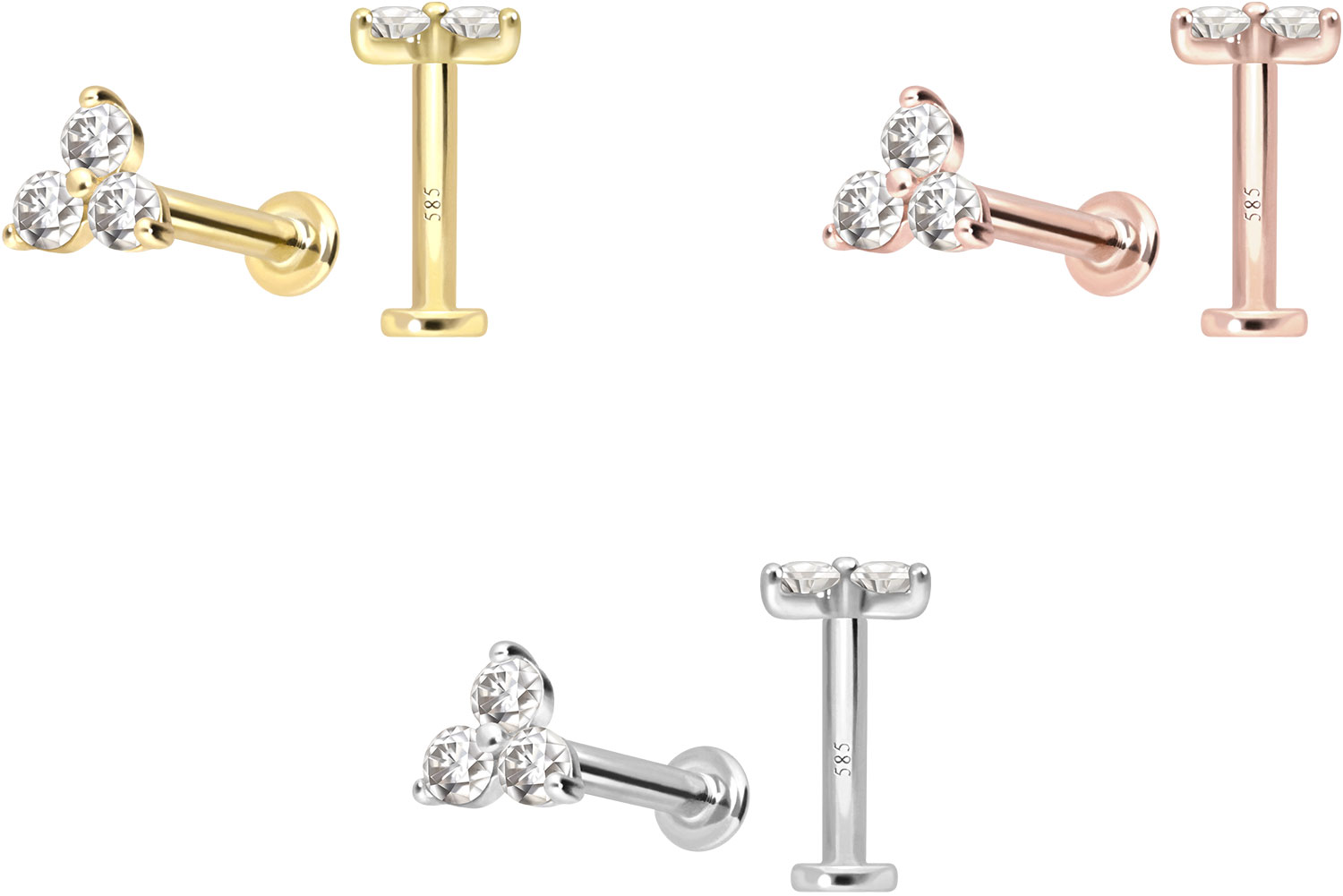 14 Karat Gold - Labret mit Innengewinde Moissanit-Blume