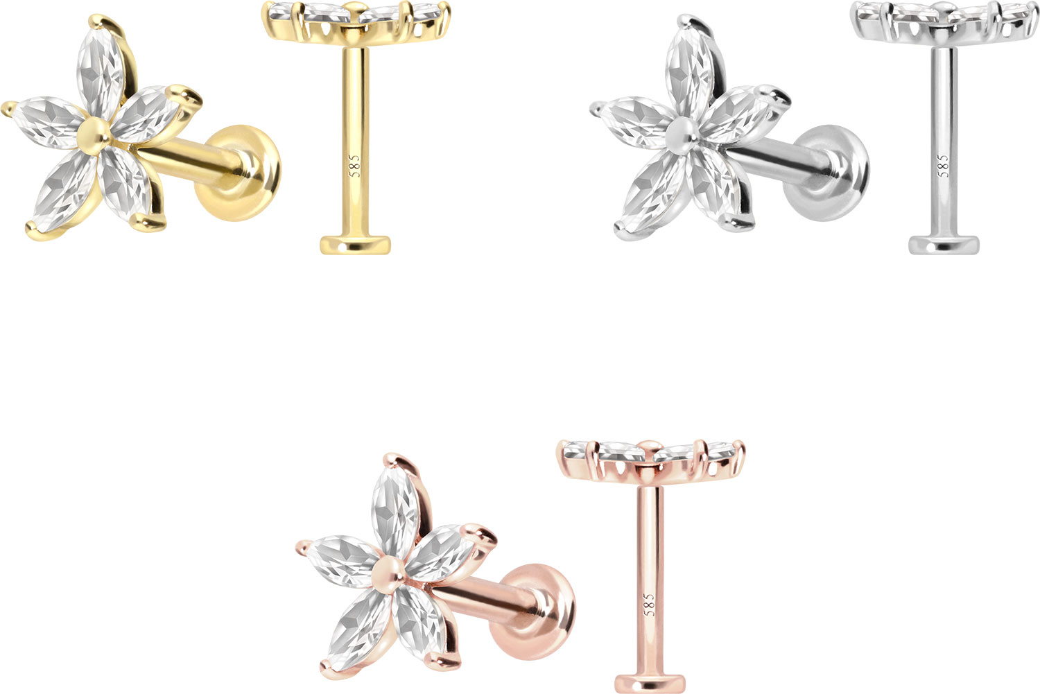 14 Karat Gold - Labret mit Innengewinde Moissanit-Blume