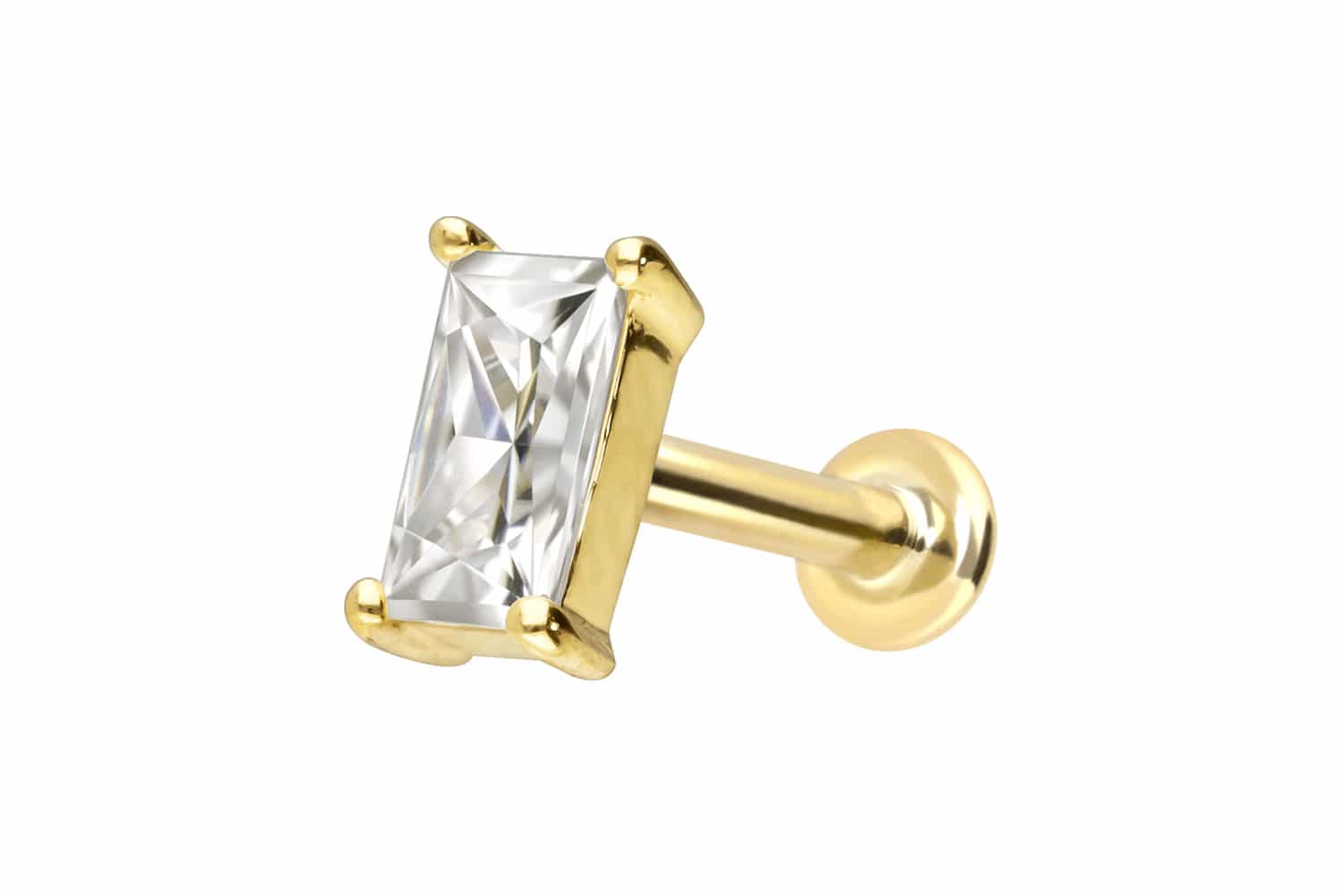 14 Karat Gold - Labret mit Innengewinde Moissanit-Rechteck