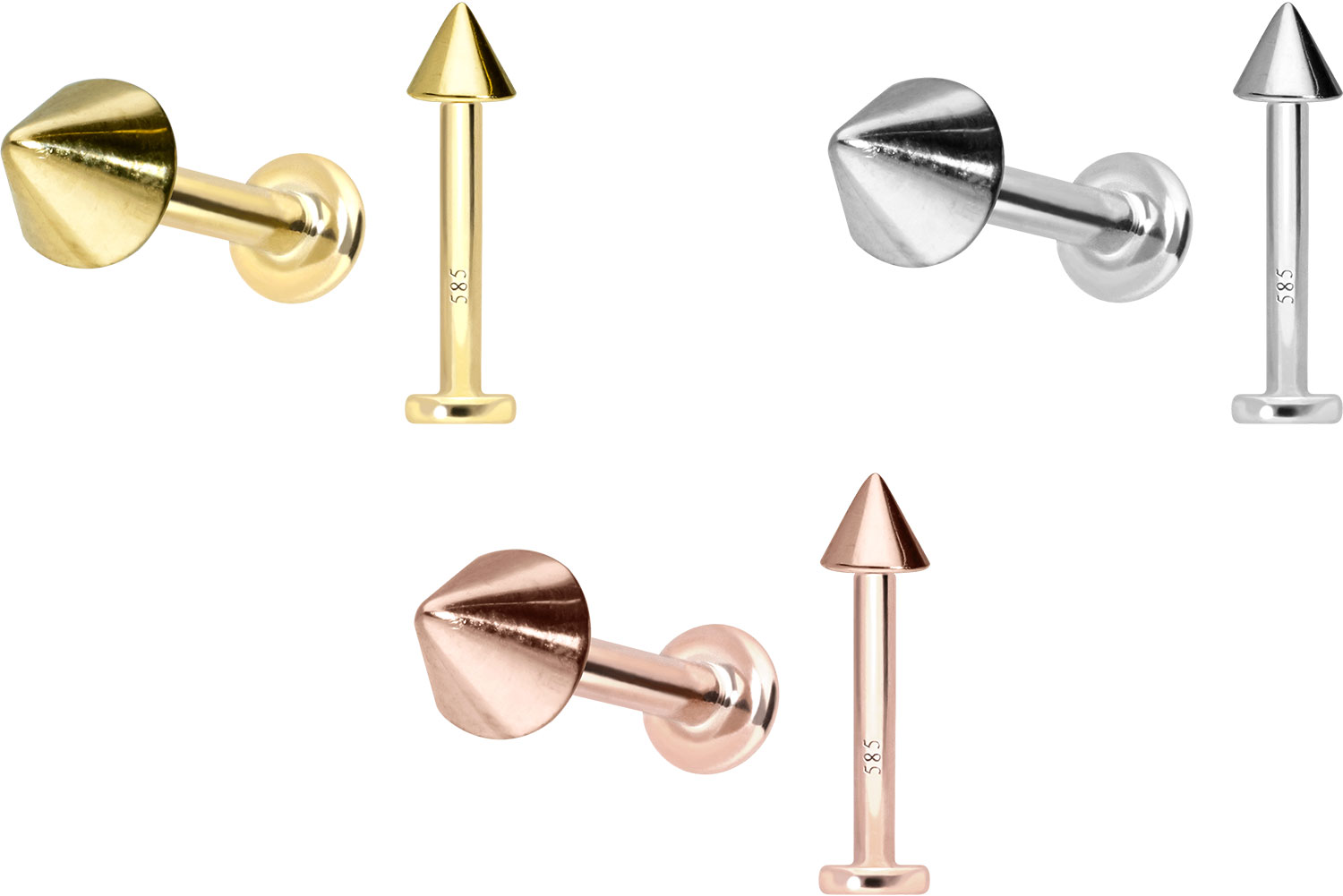 Dieses Labret ist vollständig aus hochwertigem 14 Karat (585er) Gold gefertigt, das neben seiner exzellenten Qualität auch mit Eigenschaften wie guter Hautverträglichkeit und hoher Beständigkeit zu begeistern weiß. Farblich ist es in Gelbgold, Roségold und rhodiniertem Weißgold erhältlich. Das Labret verfügt über einen zeitlos schönen Schraubaufsatz mit Außengewinde in Form einer Spitze, hat