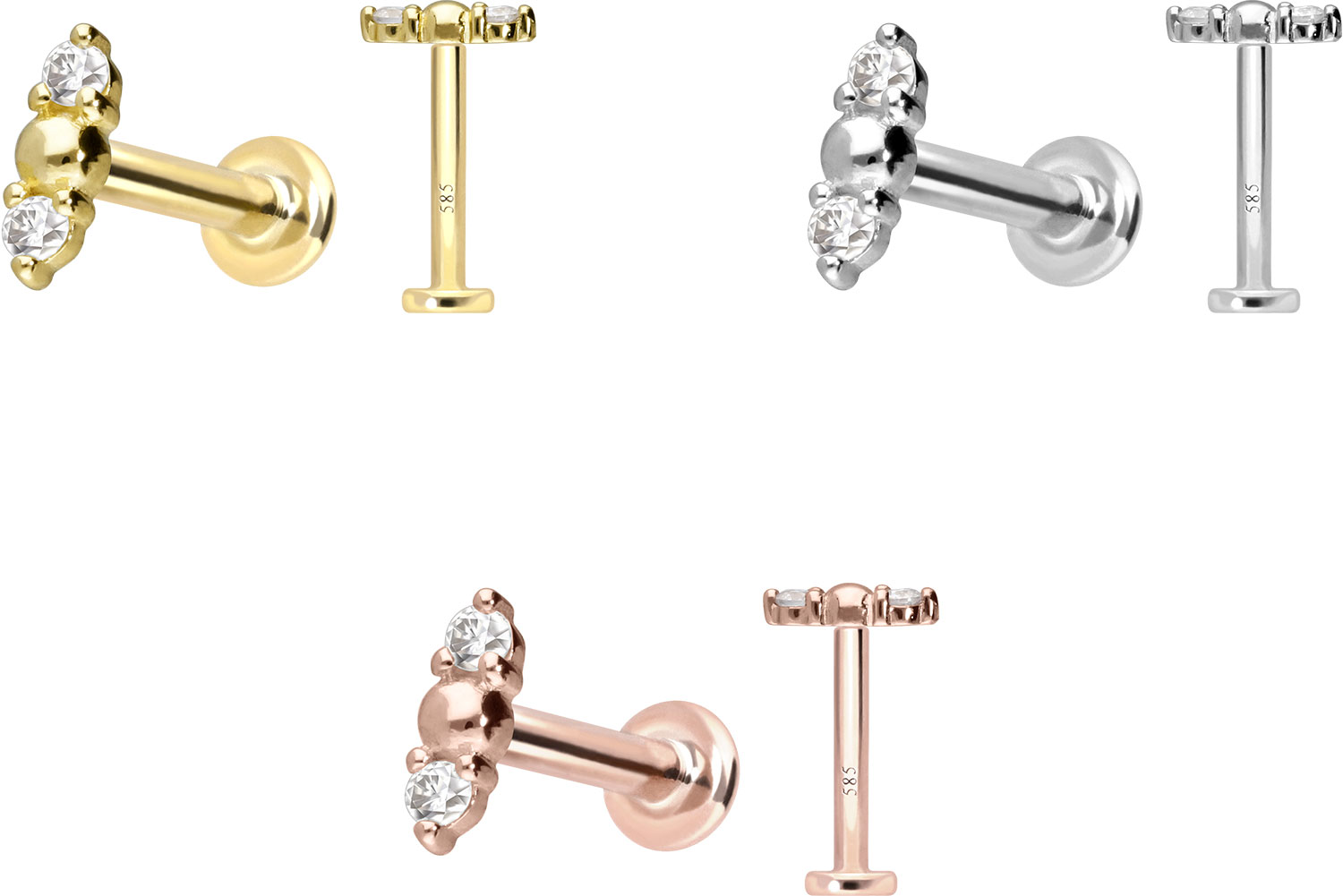 14 Karat Gold Labret mit Push Fit 2 MOISSANITE + KUGEL
