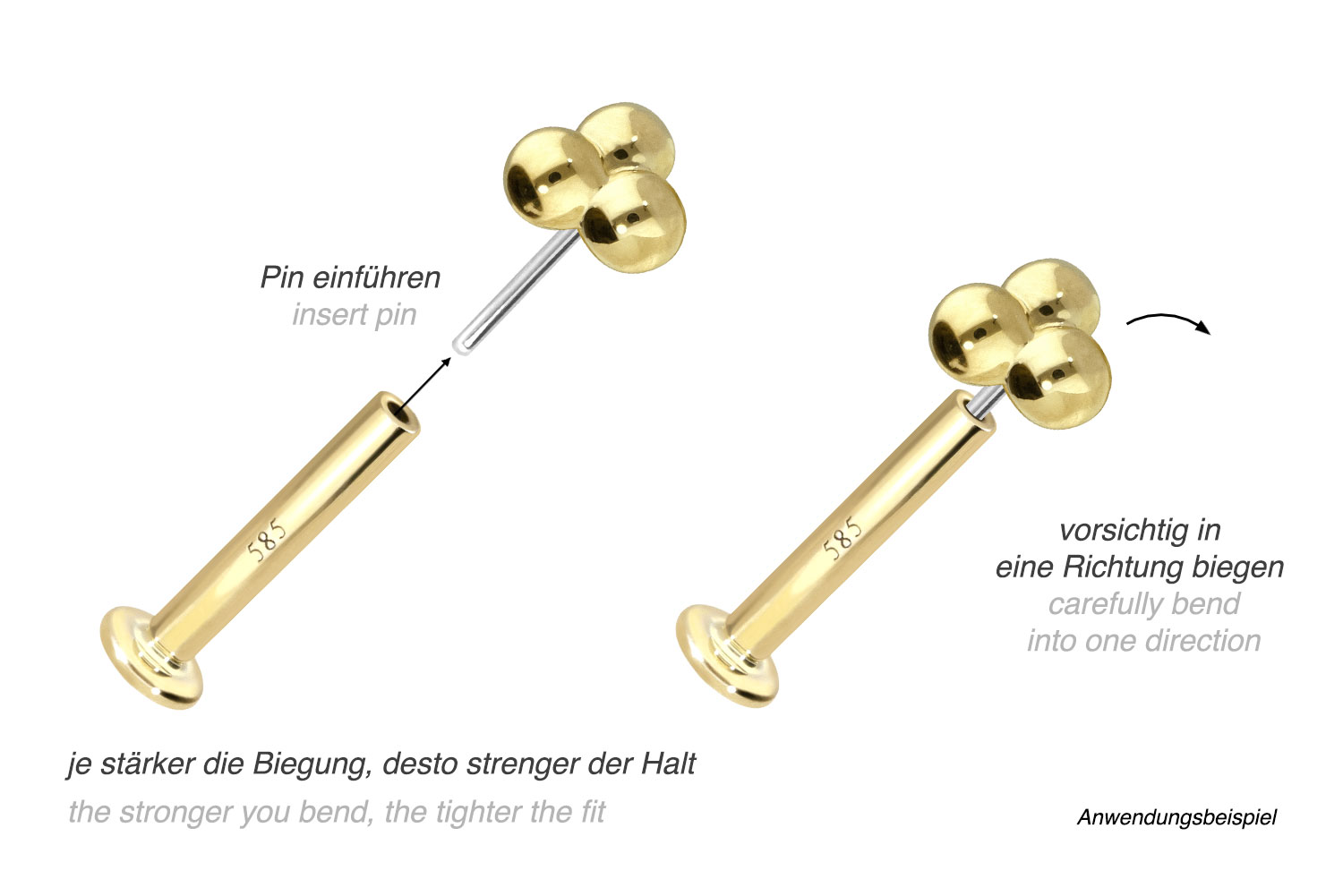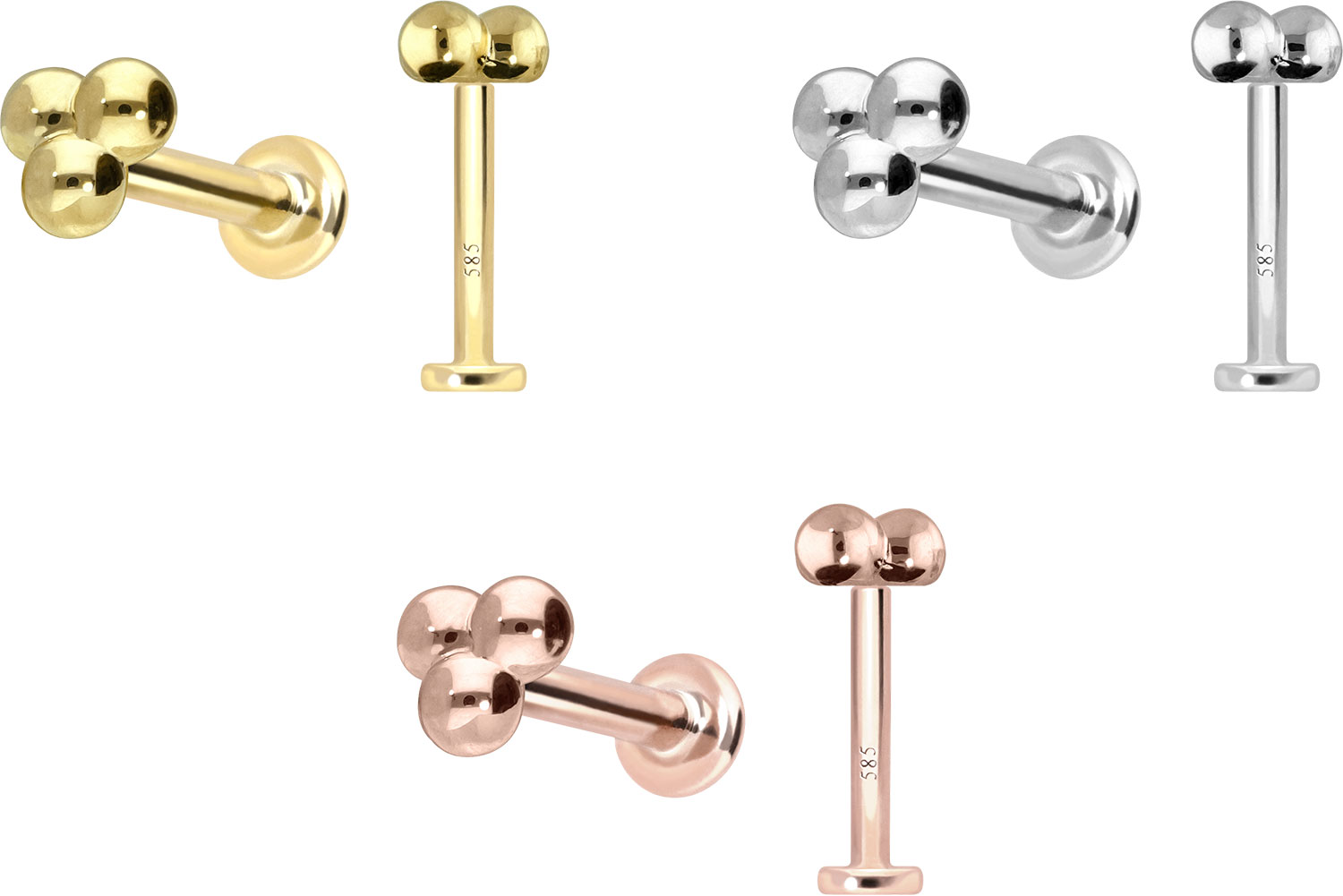 14 Karat Gold - Labret mit Push Fit 3 Kuglen
