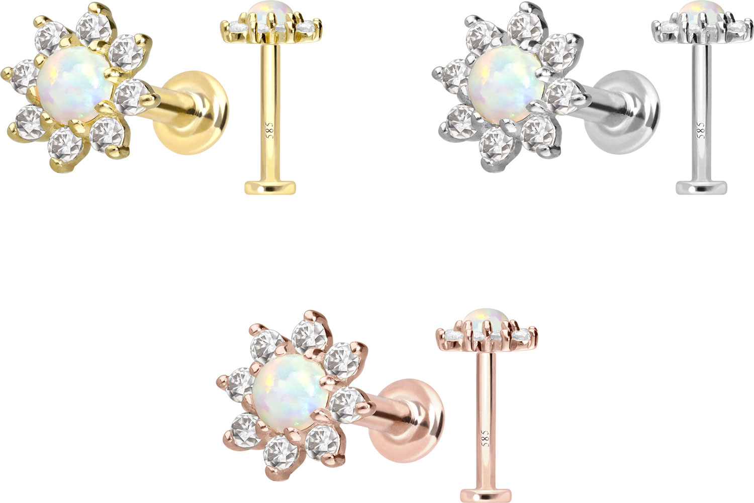 14 Karat Gold Labret mit Push Fit BLUME + SYNTHETISCHER OPAL