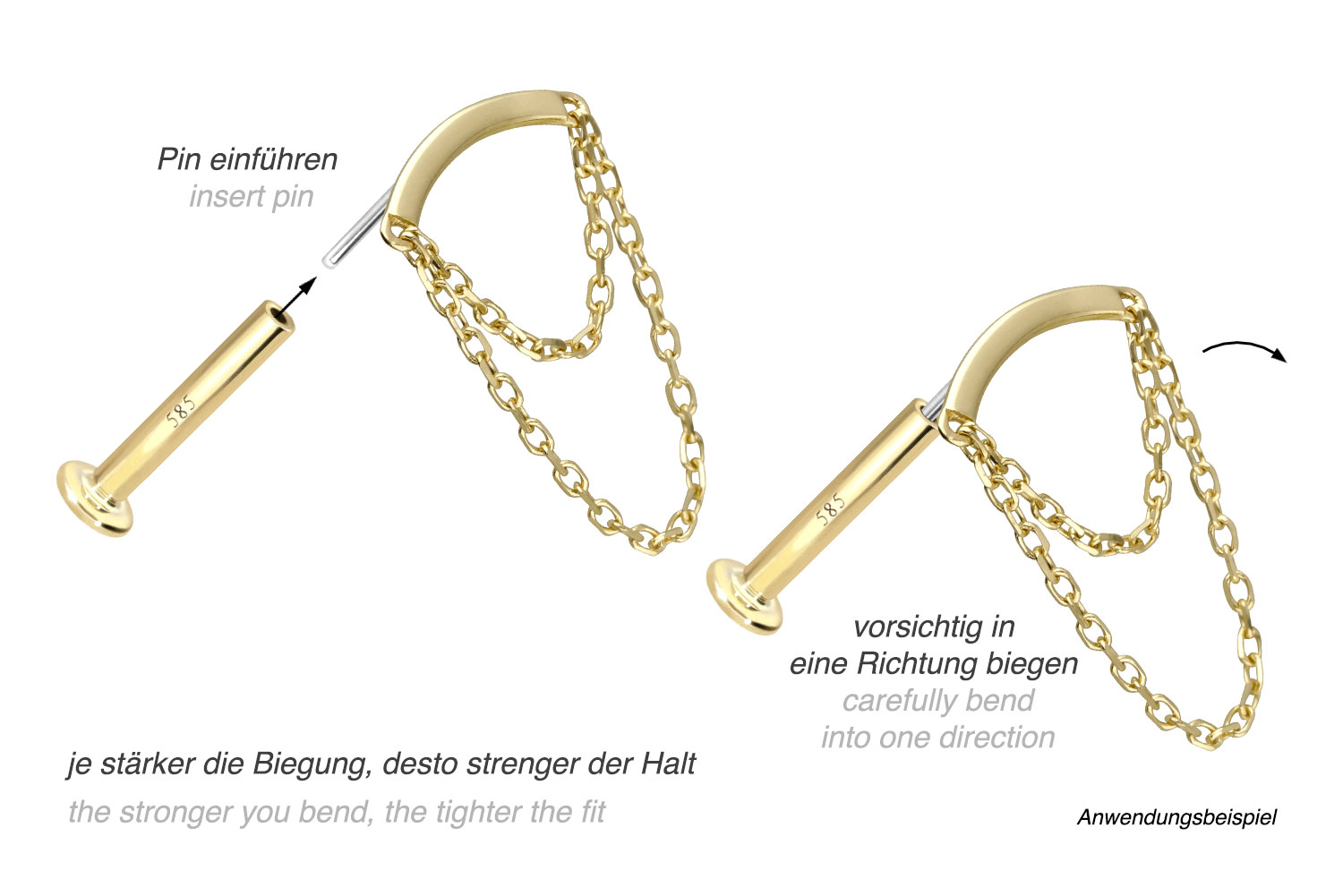 14 Karat Gold Labret mit Push Fit BOGEN + 2 KETTEN