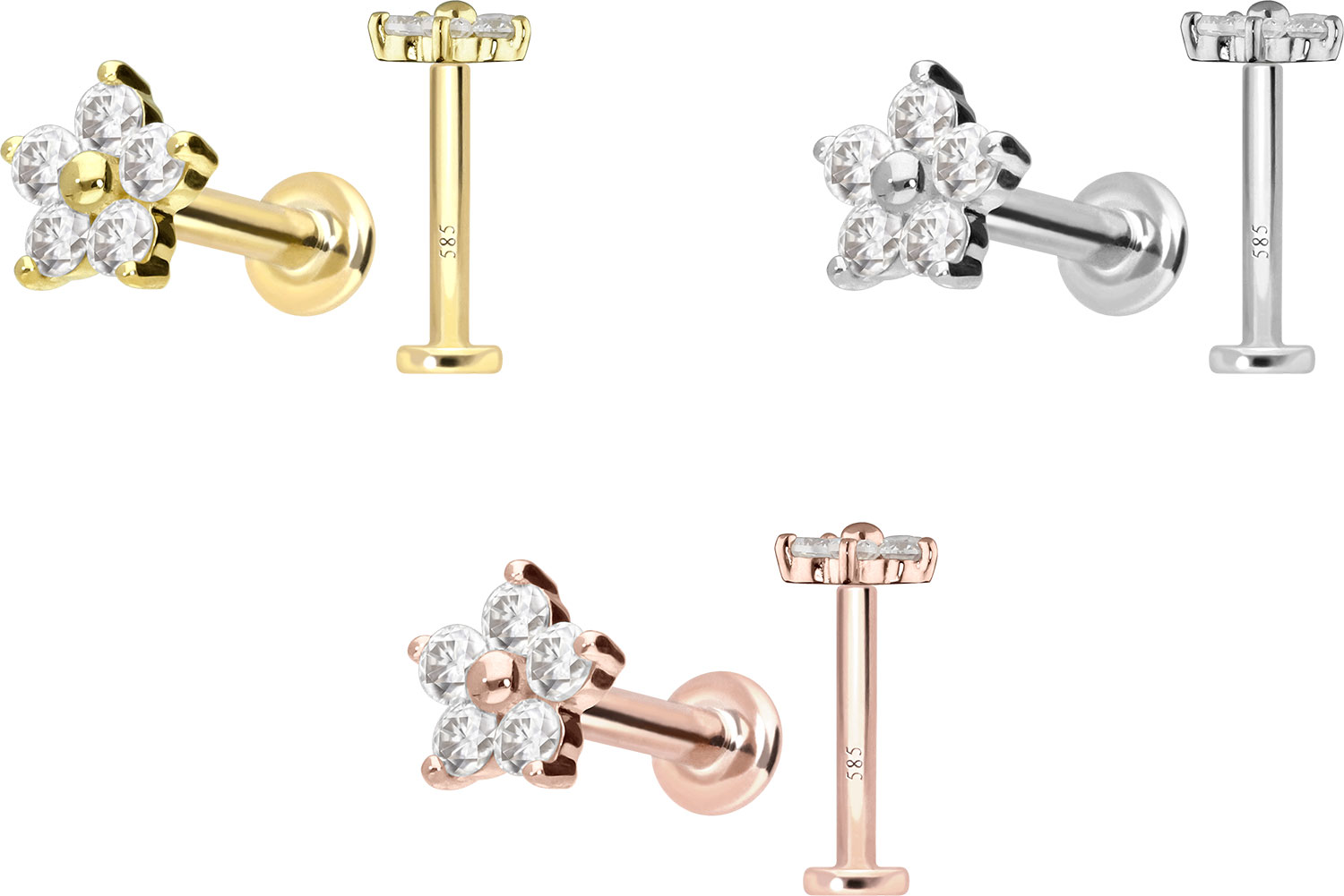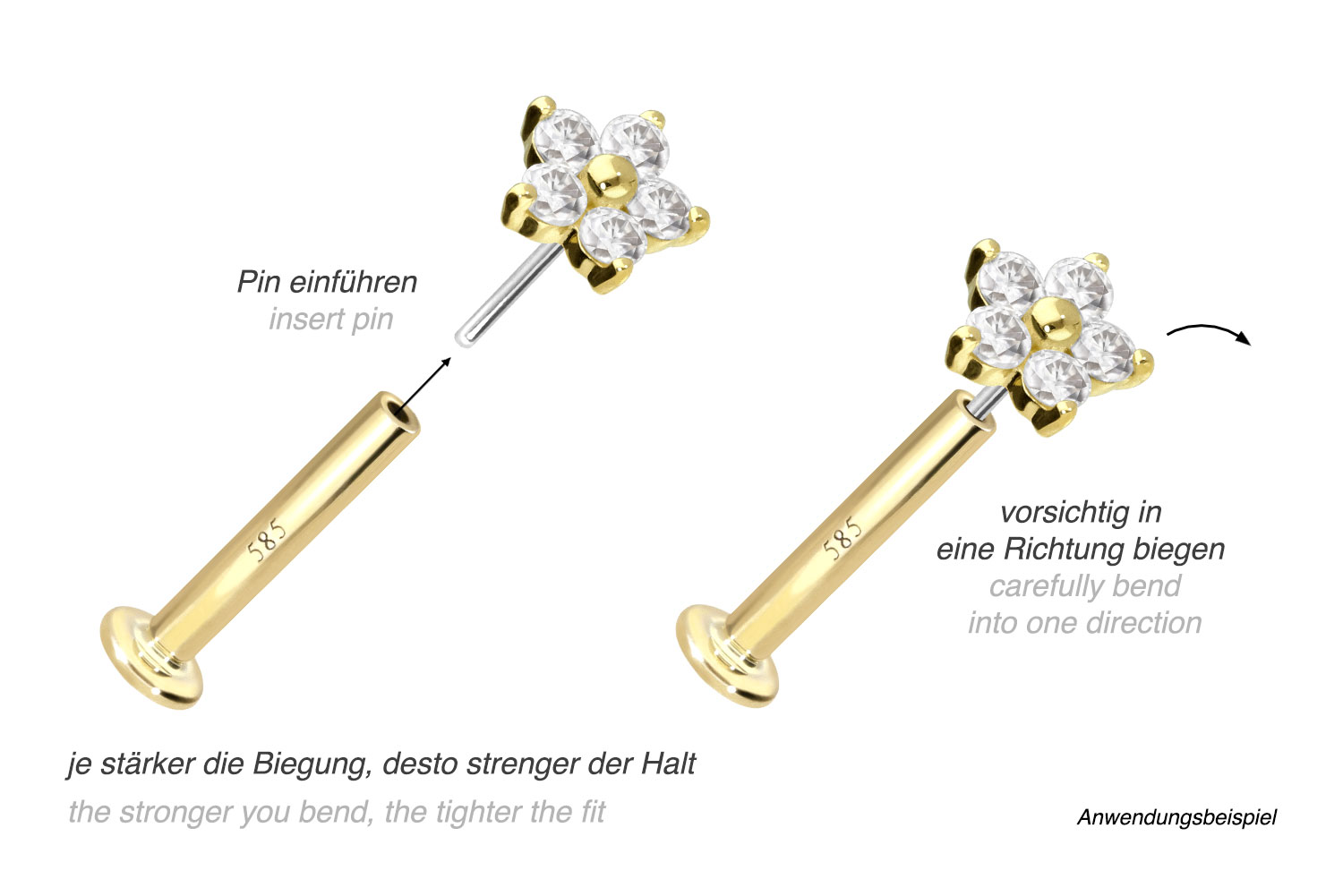 14 Karat Gold - Labret mit Push Fit Moissanit-Blume